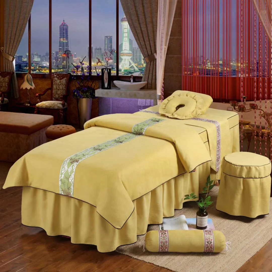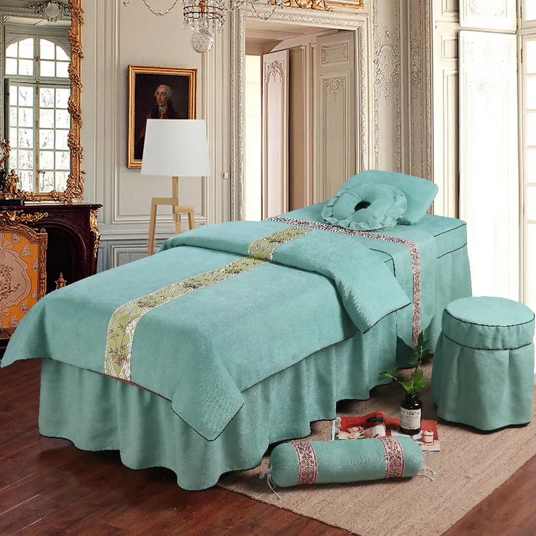High Quality Massage Spa Bedsheet Table Skirt Pillow Cover Quilt Stool Cover Spa Sheet 5pcs Beauty Salon Bedding Sets