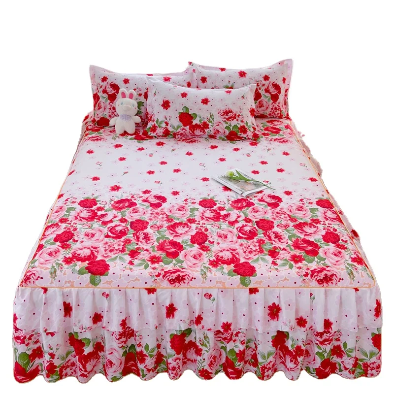 Newest Style Bedding Luxury Bed Cover Modern Floral Plant Printed Thick Fitted Skirt Sheets 150x200 Bed Skirt