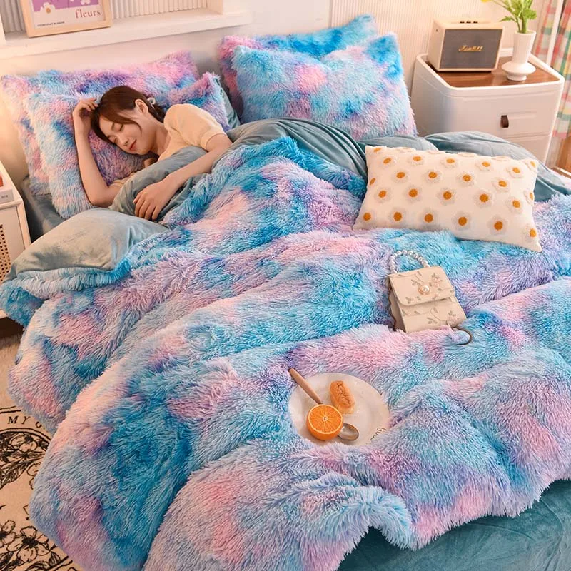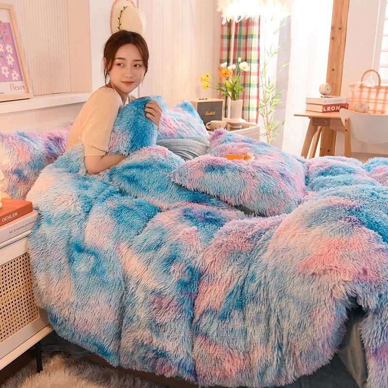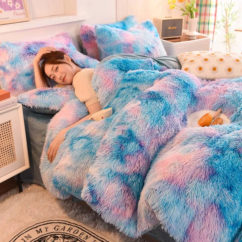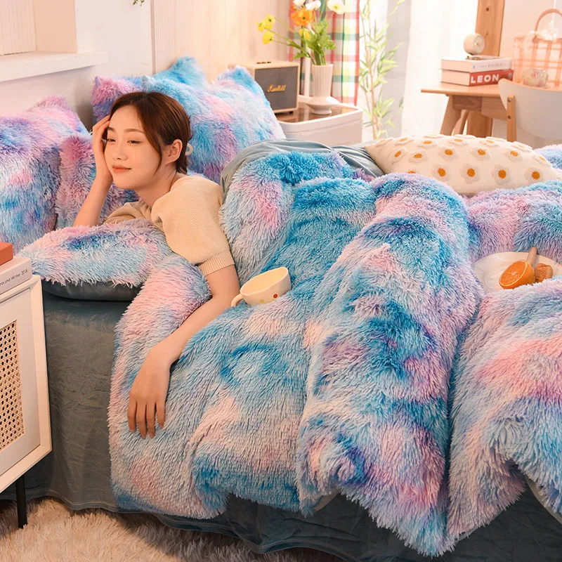 Winter Warm Colorful Fluffy Velvet Duvet Cover Set Luxury Soft Solid Color Quilt Cover With Bedsheets