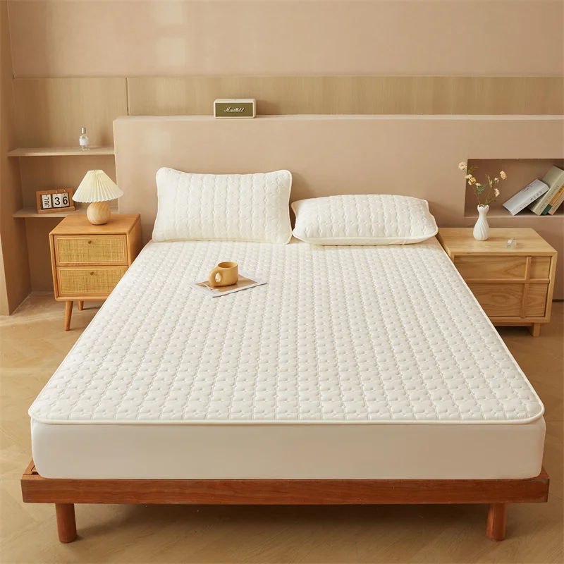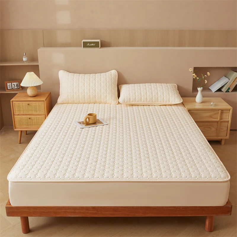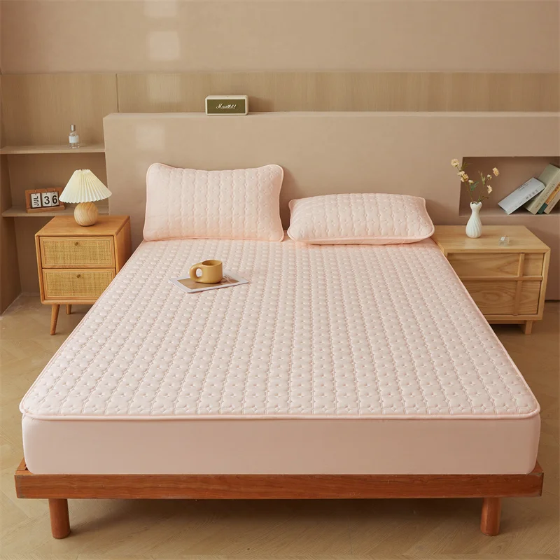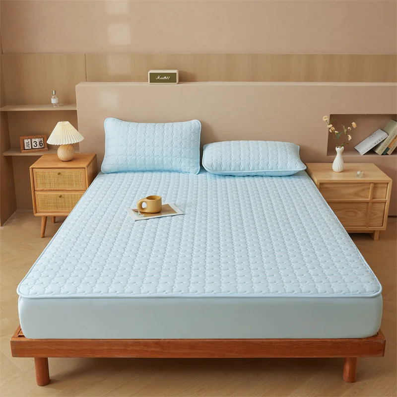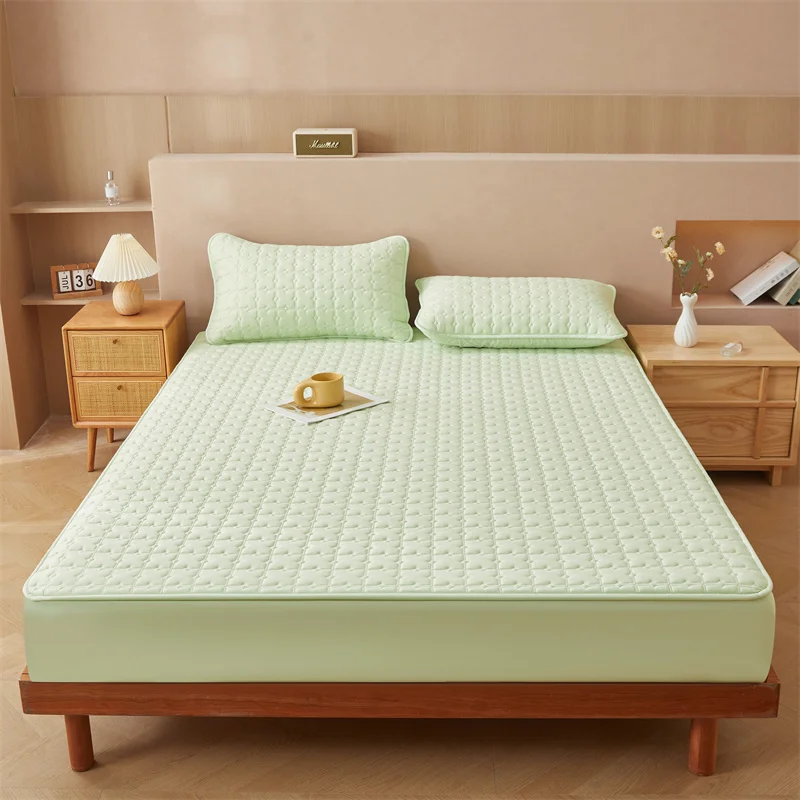 Custom Waterproof Polyester 3pcs Solid Color Bed Cover Mattress Protector 3pc Bed Fitted Sheet Bedding Set