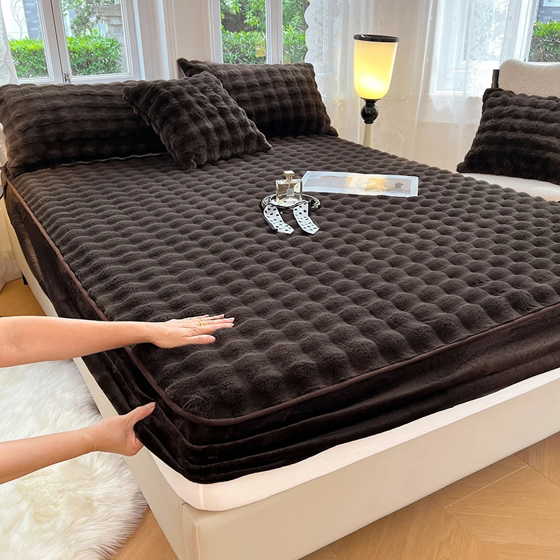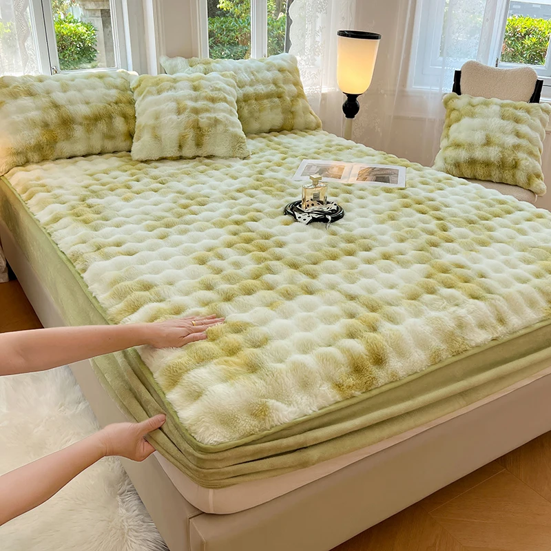 2026 New Class a Rabbit Plush Bed Hat Crystal Velvet Mattress Protective Cover Milk Velvet Fitted Sheet Mattress Cover
