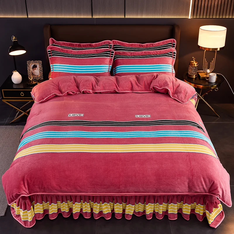Red Rose Bedding Set Luxury Polyester Comfortable Bed Sheet Quilt Cover Pillowcase Four Piece Set
