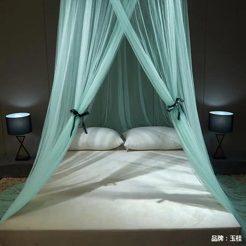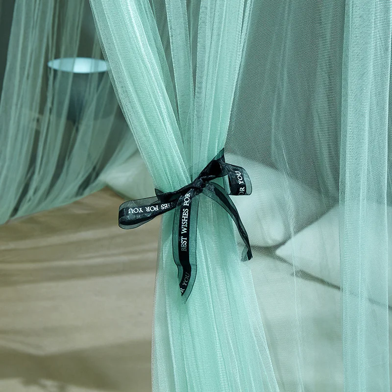 100% Polyester Lace Bow Hanging Type Mosquito Net Foldable Green Mesh Canopy for King and Queen Portable Outdoor Sleeping