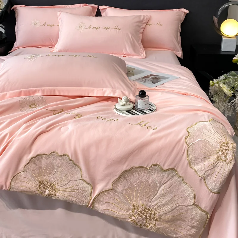 Eco Friendly Luxury Bamboo Fiber Bedding Set 4 Pieces Breathable Bed Linen for Hotel Use