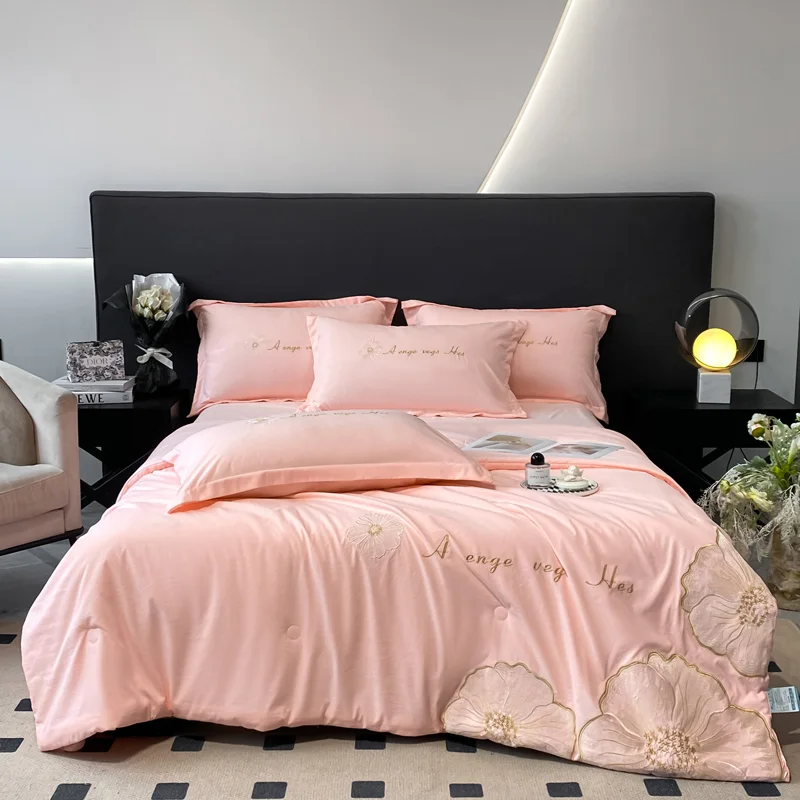 Wholesale Factory Summer Quilt Set European Style Skin-friendly Printing of Four Summer Cool Washed Silk Quilt Gift