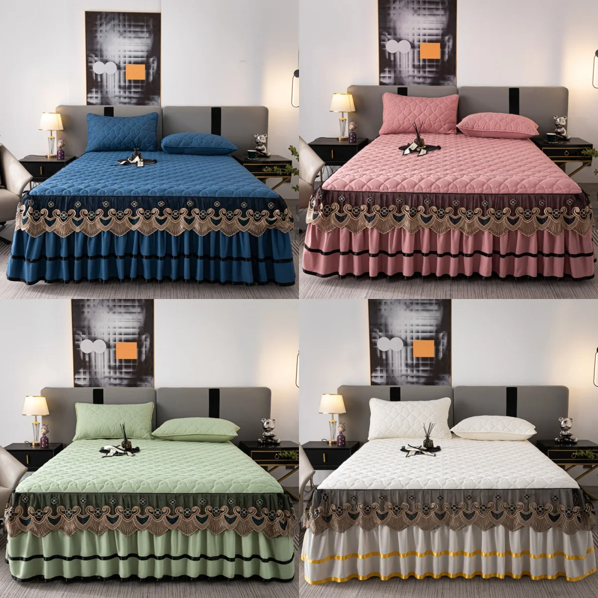 Hot Sale Washable King Queen Dorm Single Size Bed Sheets Skirt with Elastic Belt Pillowcases Home and Hotel Bed Skirt Covers