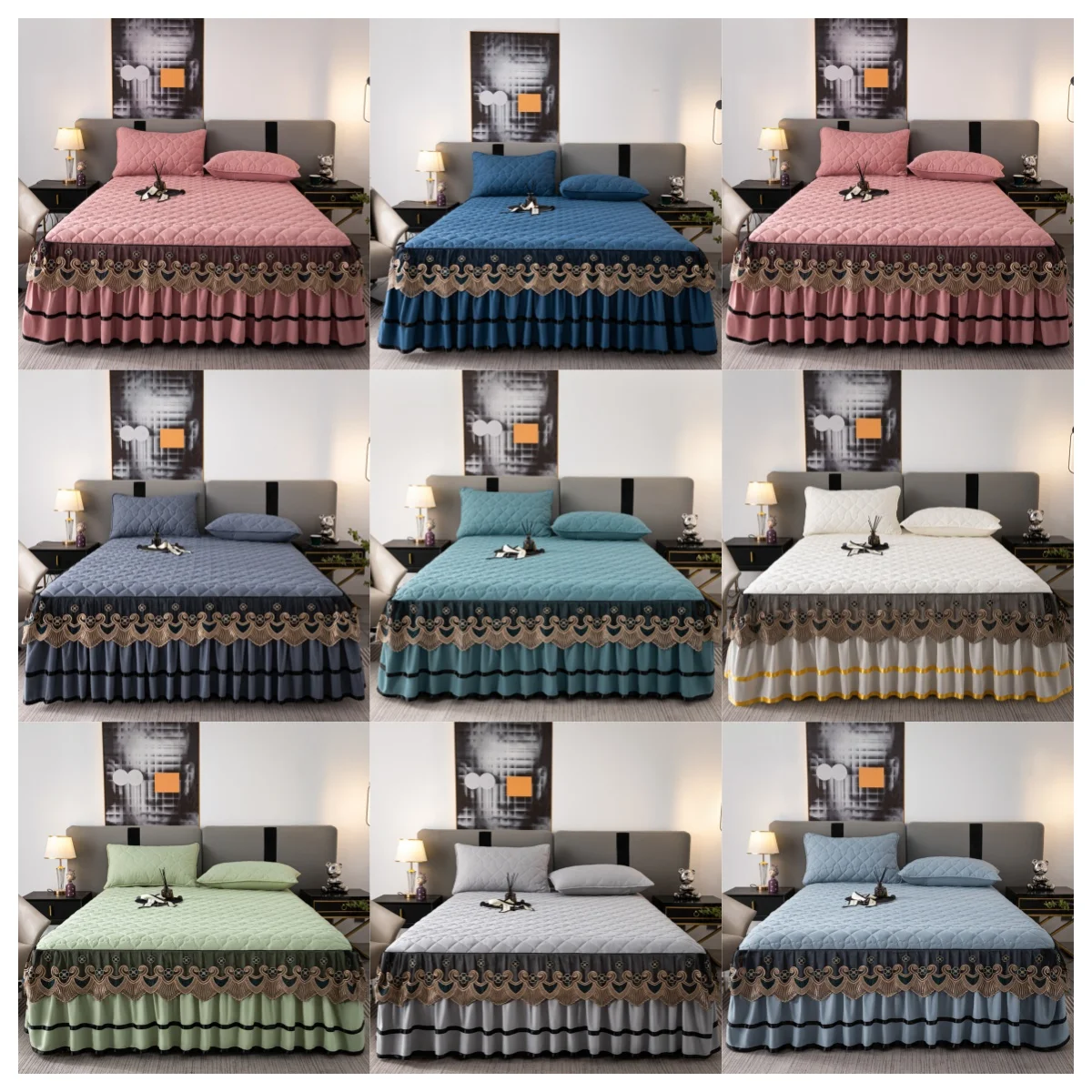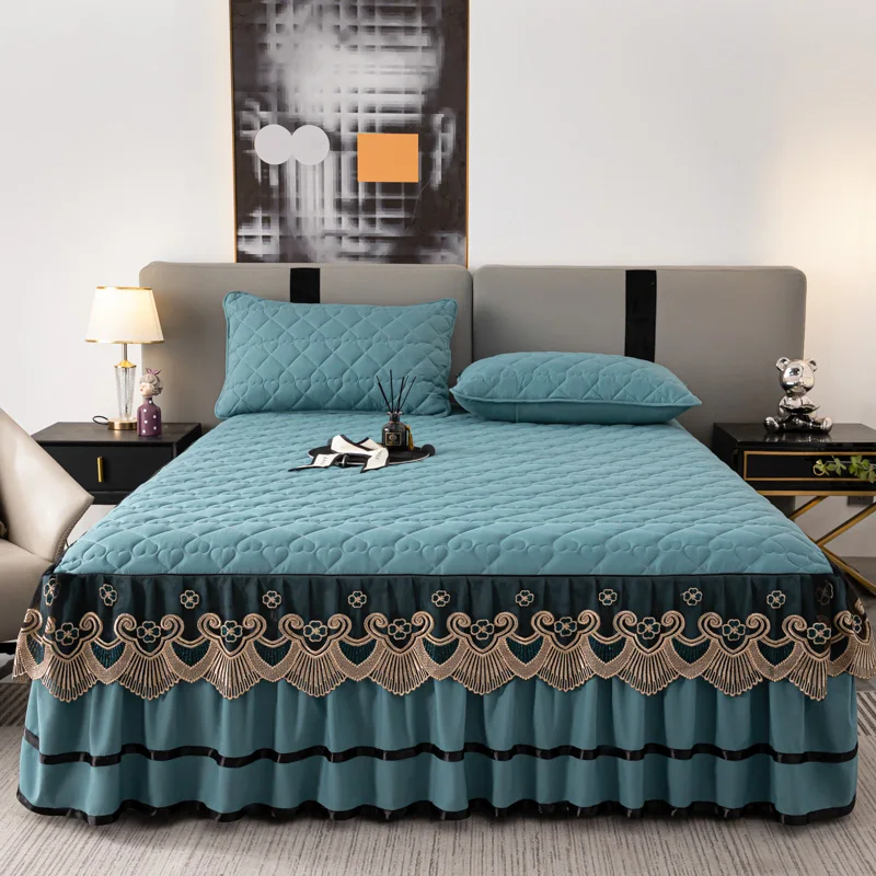 High Quality European Style Luxury Cotton Silky Bedspread Queen Bed Skirt Bed Sheets Set with Pleats Skirt