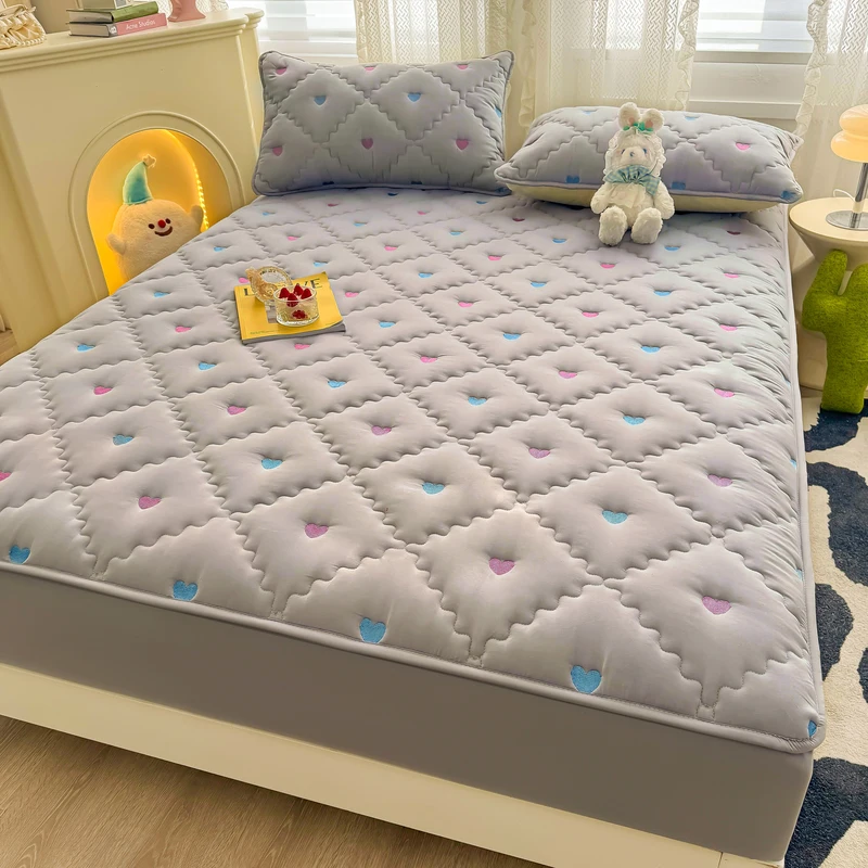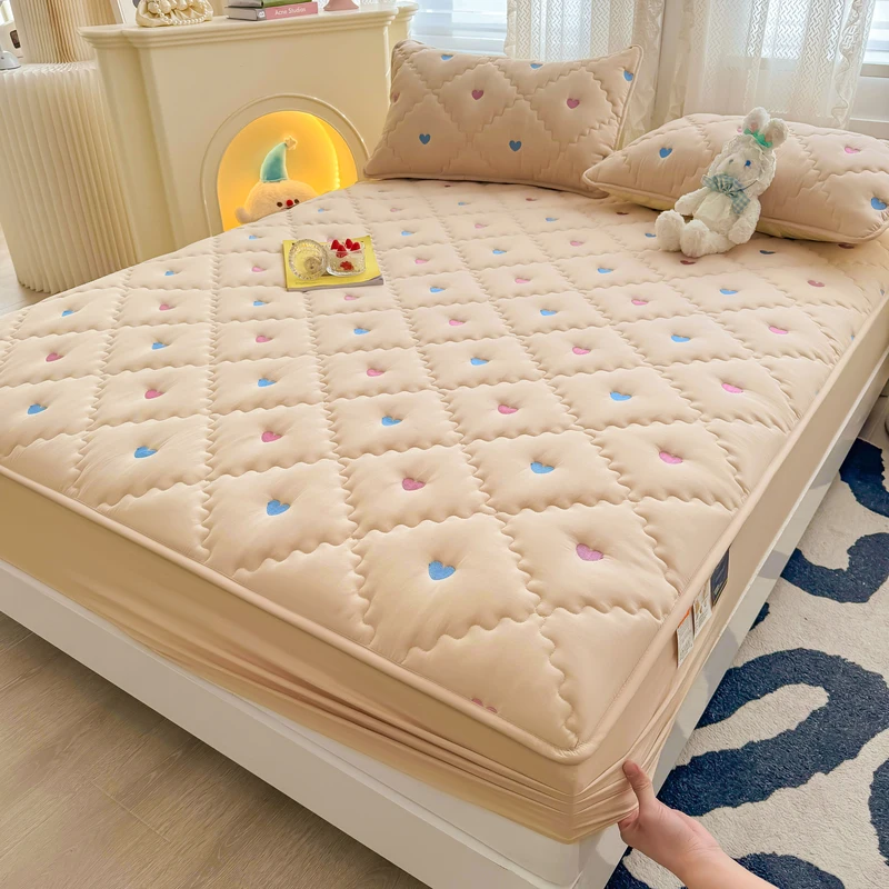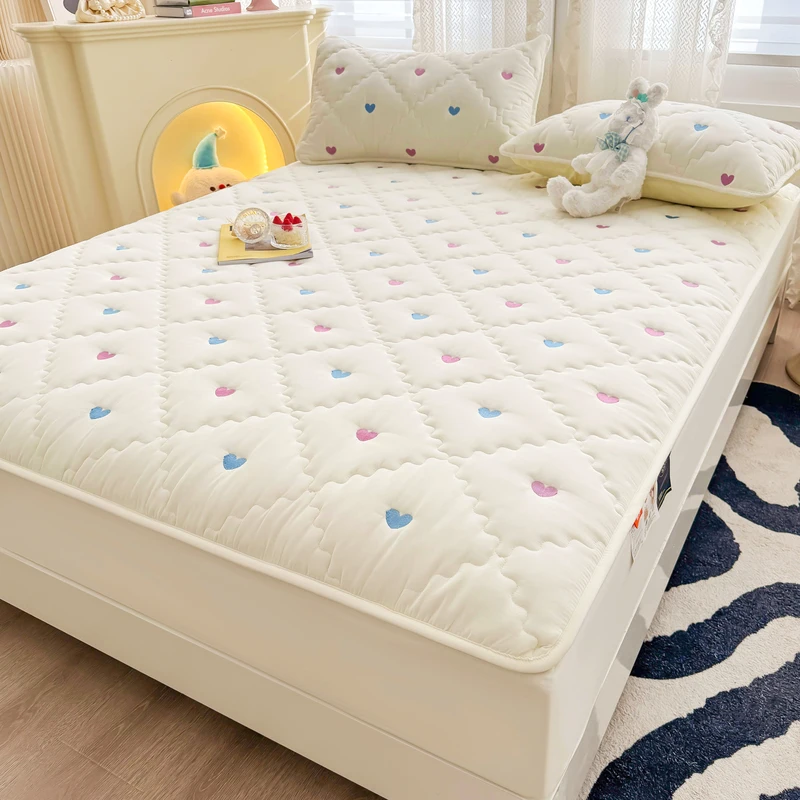 Hot Sale Pink Color Heart Shape Linen Mattress Protector Terry Cotton Bed Sheet Mattress Protector Cover king Size