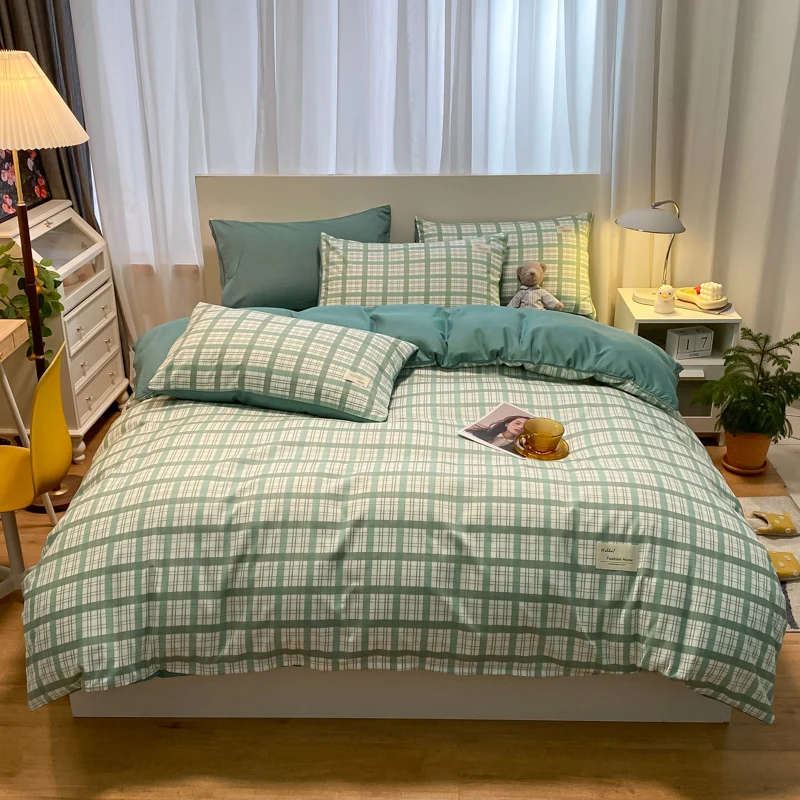 2026 Hot Sale Wholesale Checkered Patterns Super King Flat Fitted Bed Sheet Set Printed Duvet Cover Bedding Sets