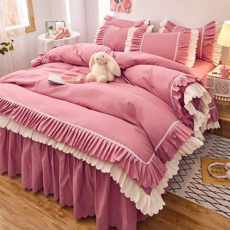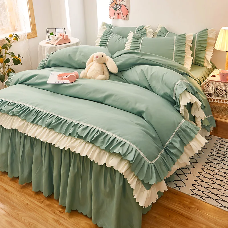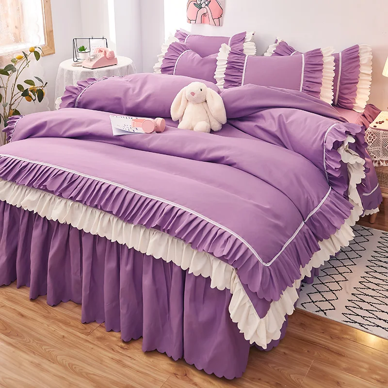 Wholesale Printing Luxury Fitted Bed Sheet Cover Skin-Friendly Soft Bed Skirt With Duvet Cover