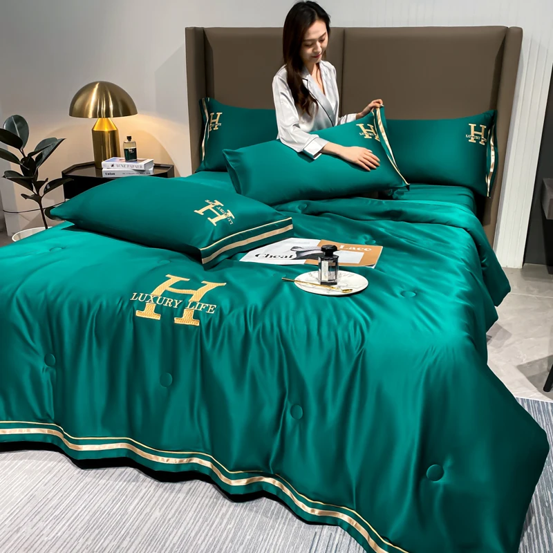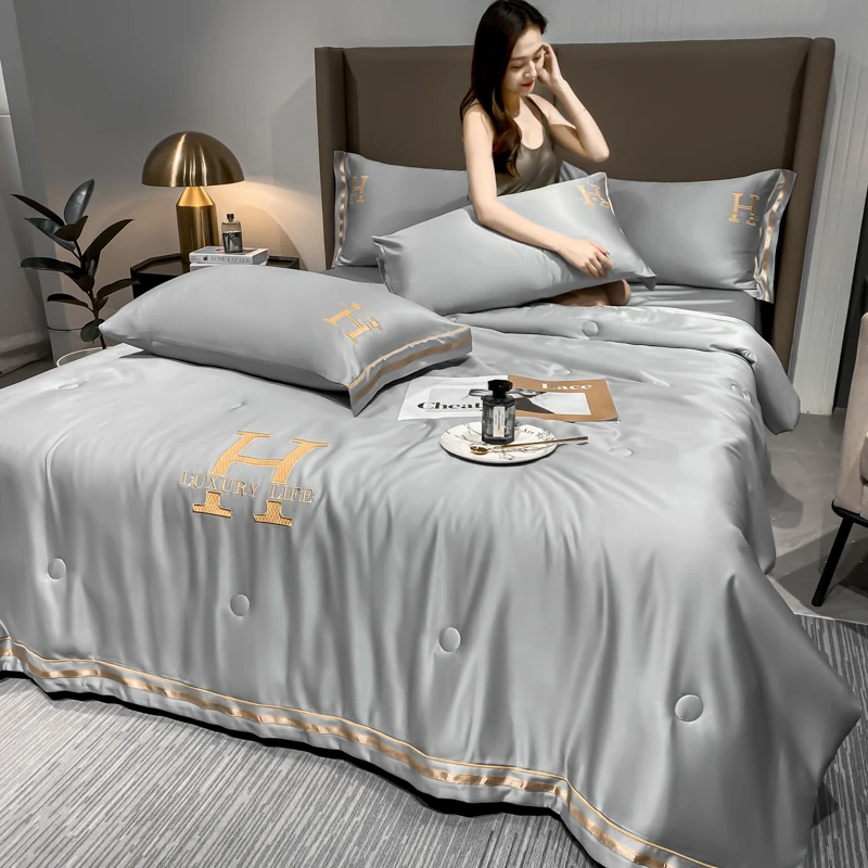 2026 New Hot Selling Bedding Set Solid Color Duvet Double Sided Silk 4-piece Set