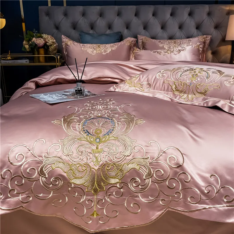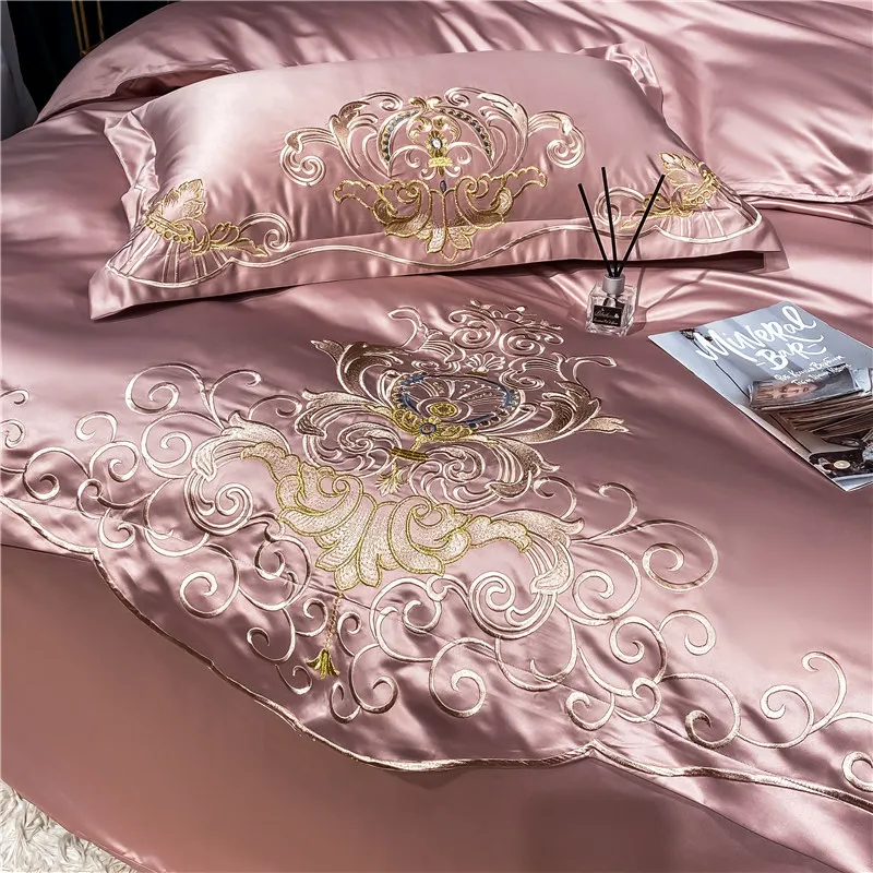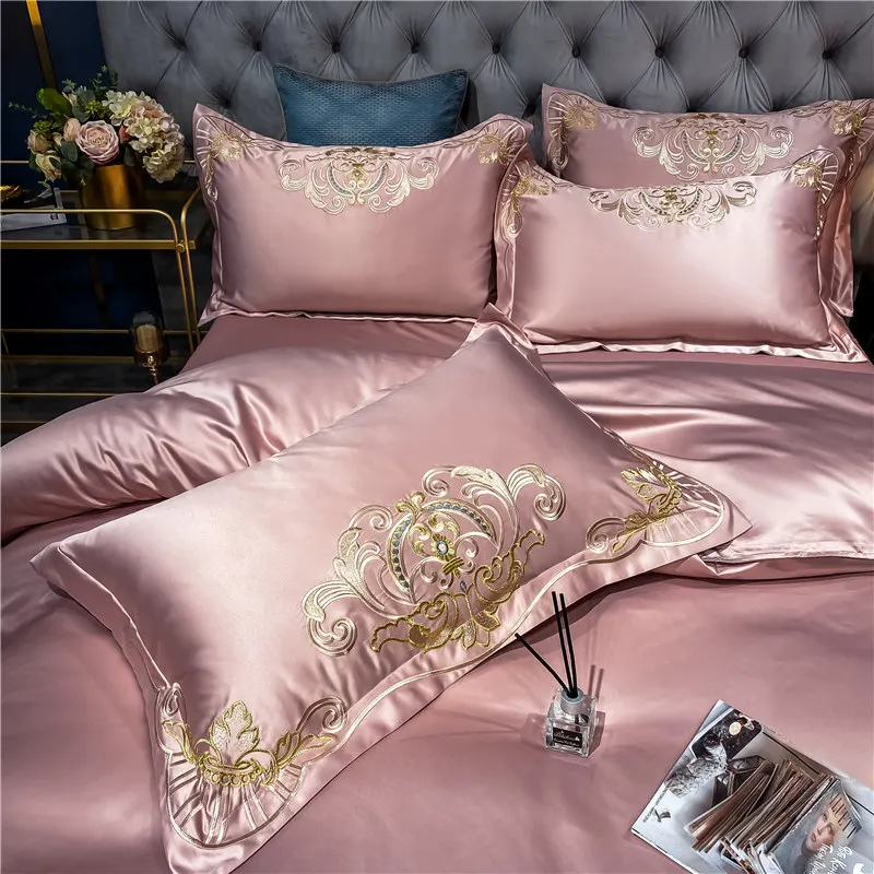 Luxury 8 Colors Wedding Washed Silk Pure Color Double-sided Ice Silk Bed Sheet Quilt Cover Silky Bedding Set