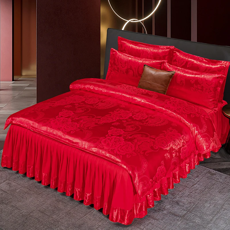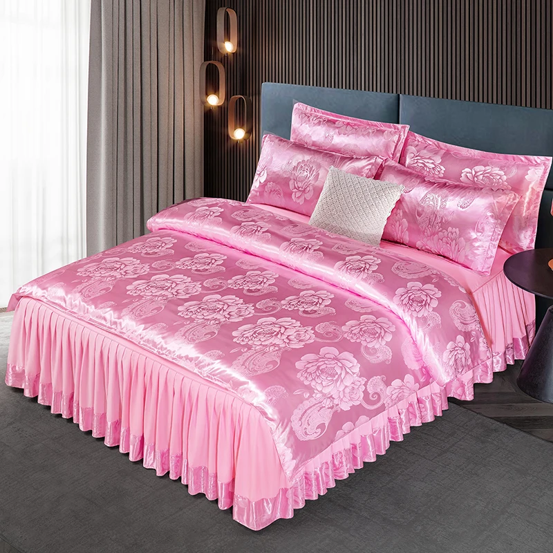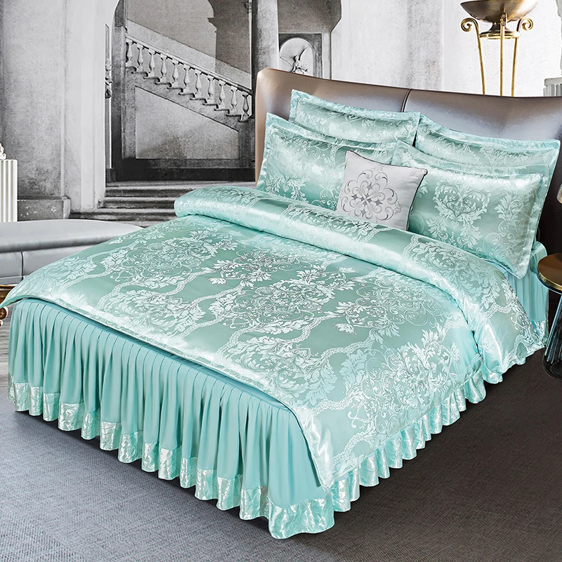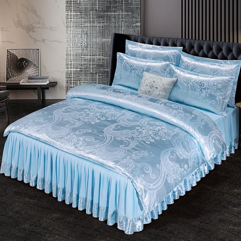 Print Bed Skirts European Style Satin Jacquard Weave Duvet Cover Set Wedding Bedding Set