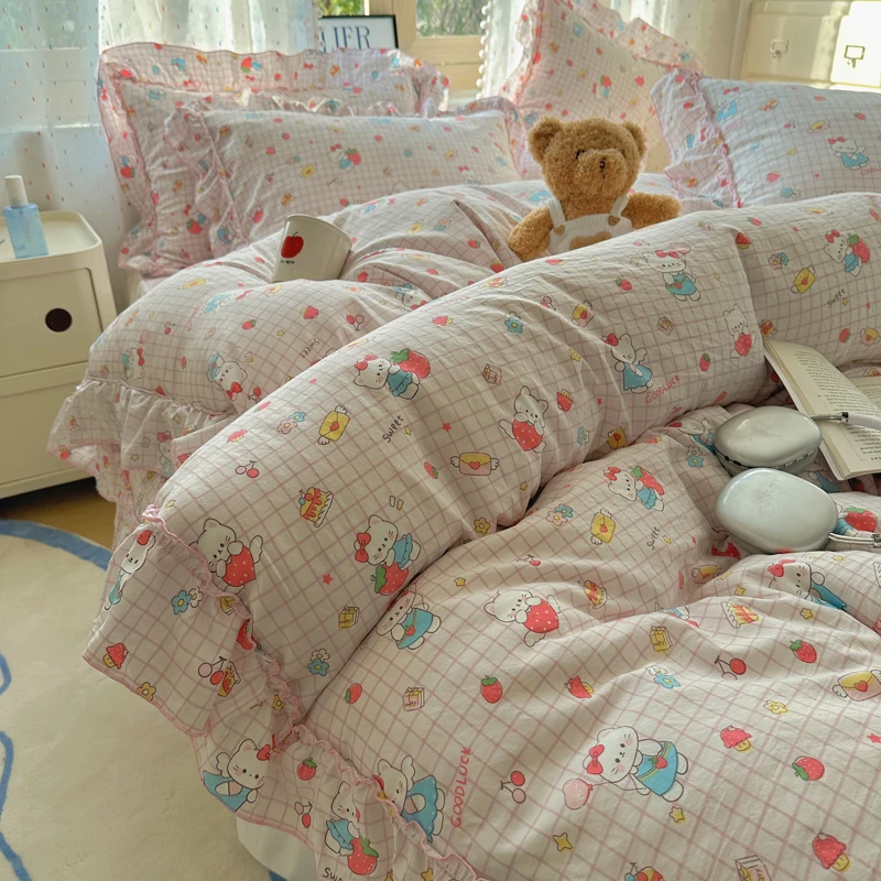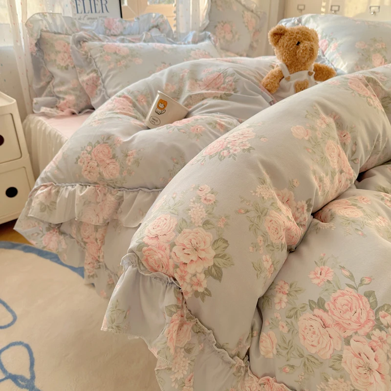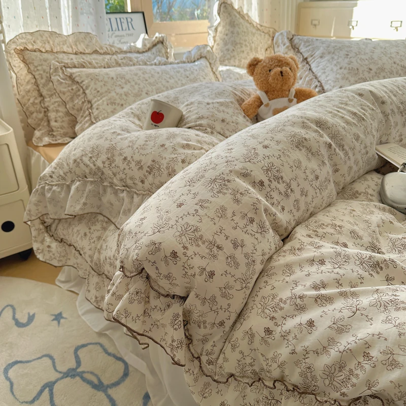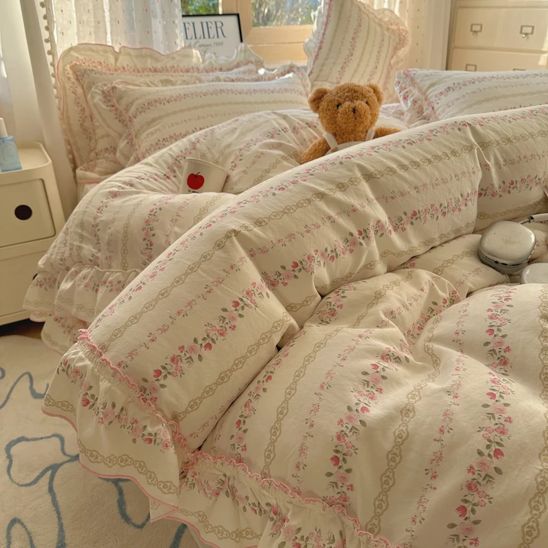2026 New Princess-style Lace Fresh Washed Cotton Jacquard Duvet Cover and Bed Skirt Set of Four Pieces