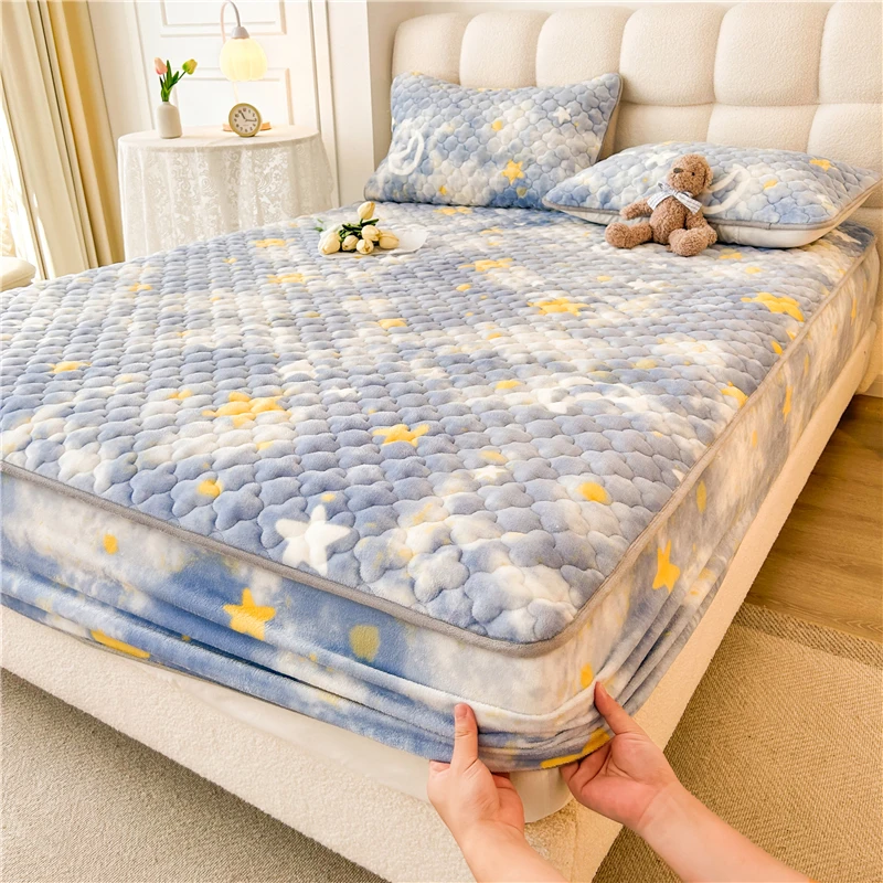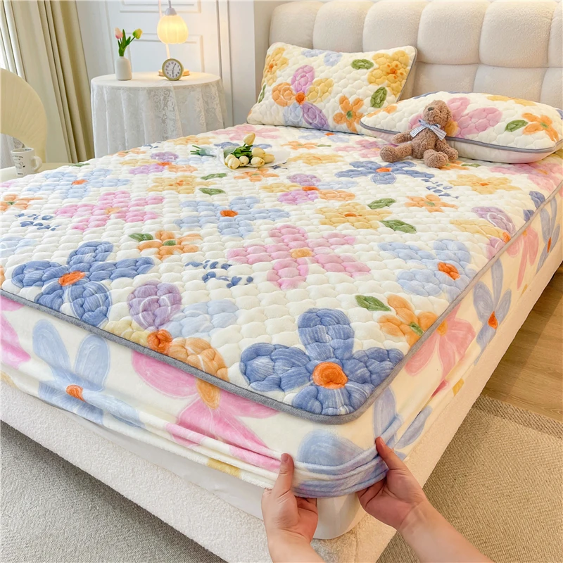 High Quality Quilted Rainbow Patterns Printed Brushed Mattress Protectors Fixed Bed Covers Bed Protection Fitted Sheet