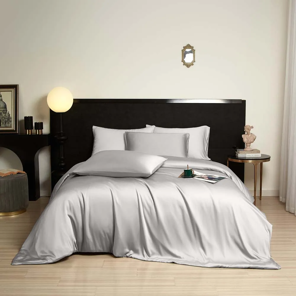 100% Bamboo Fiber Woven Modern Solid Color Bedding Set Super King Size Includes Flat Bed Sheet Fitted Duvet Cover