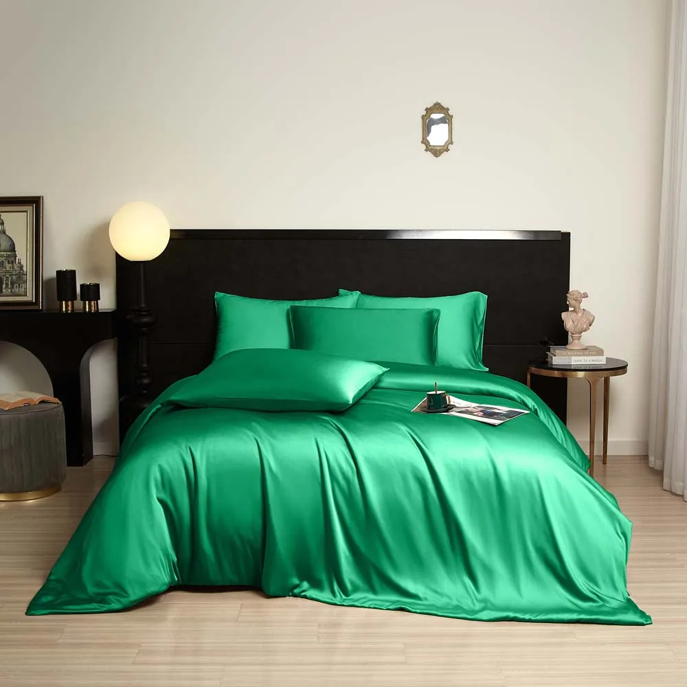 100% Bamboo Fiber Woven Modern Solid Color Bedding Set Super King Size Includes Flat Bed Sheet Fitted Duvet Cover