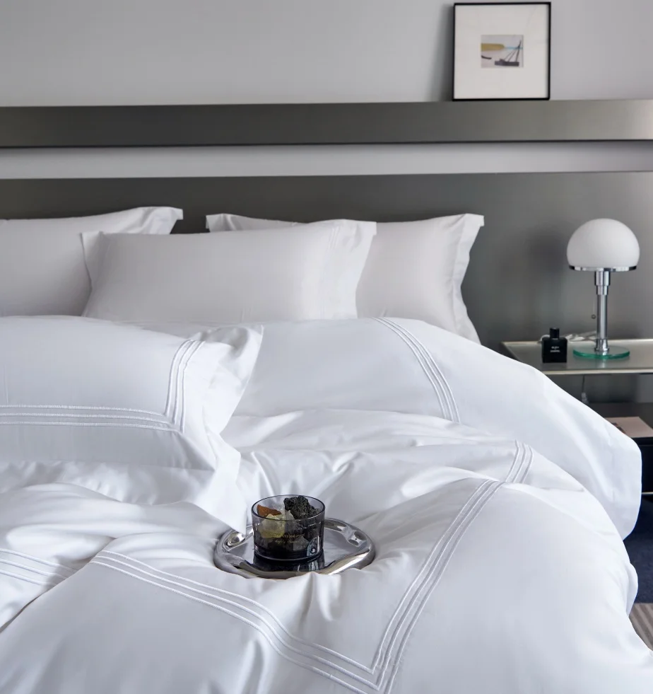Wholesale 400TC Woven Quality White Hotel Bed Linen 100% Cotton Bedding Set Single Bedsheets