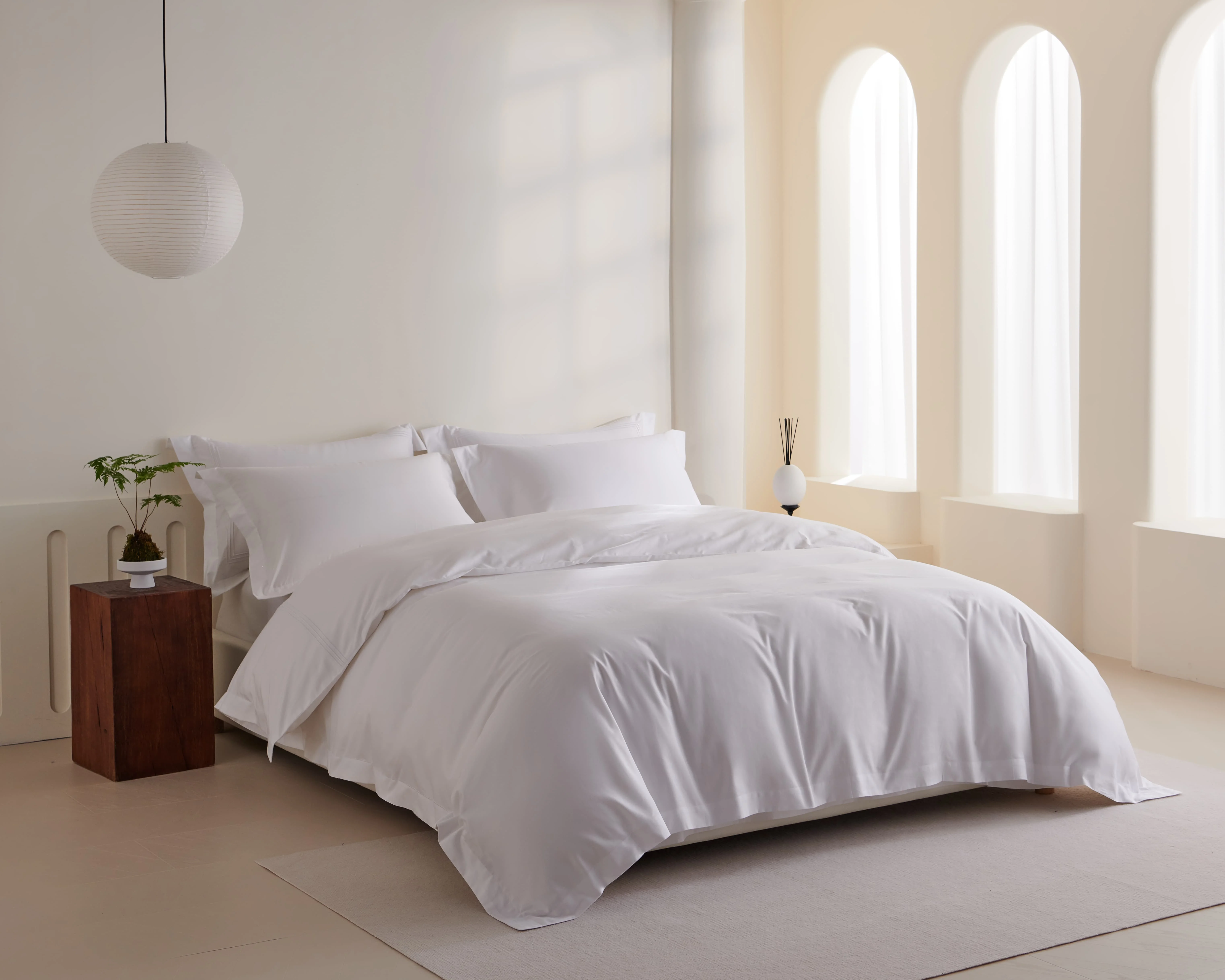 100% Bamboo Fiber Woven Modern Solid Color Bedding Set Super King Size Includes Flat Bed Sheet Fitted Duvet Cover