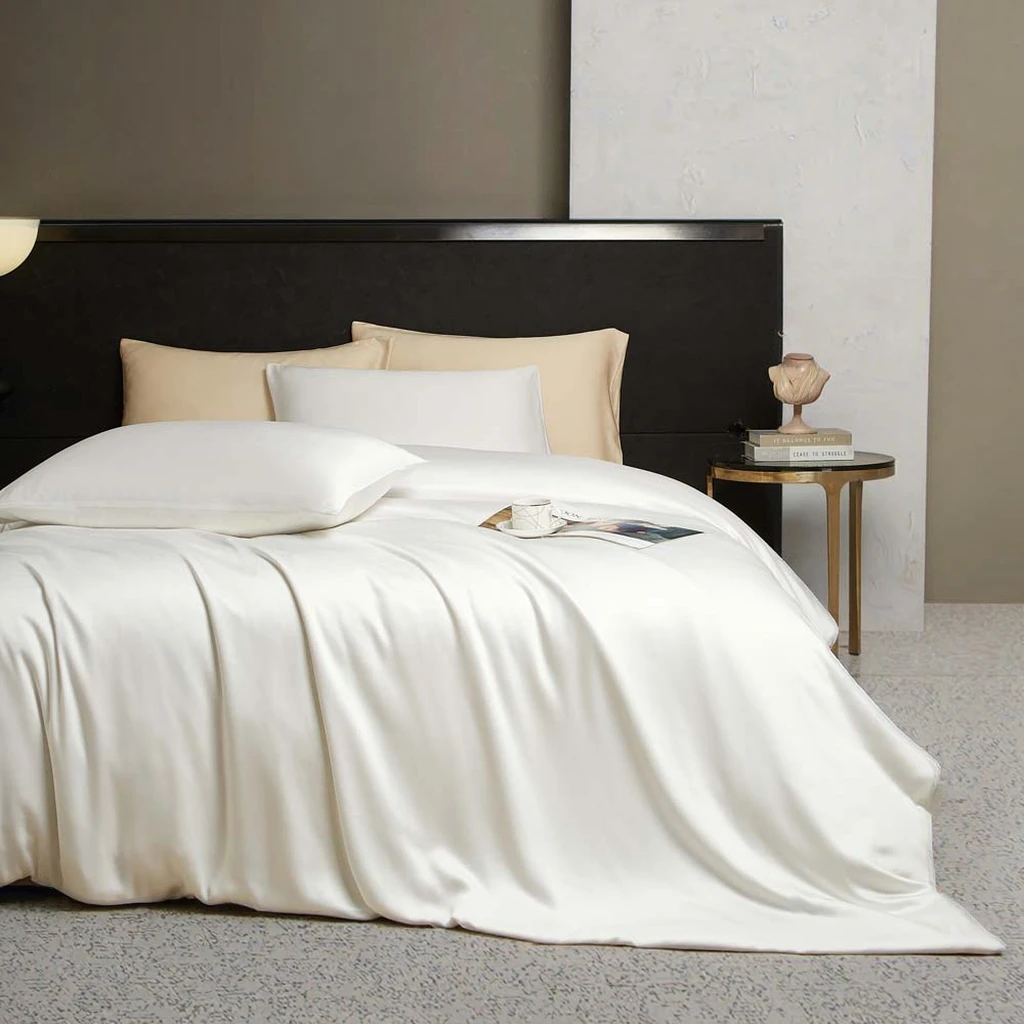 100% Bamboo Fiber Woven Modern Solid Color Bedding Set Super King Size Includes Flat Bed Sheet Fitted Duvet Cover