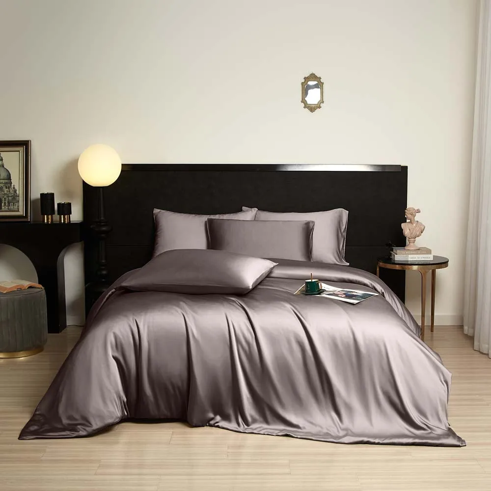 100% Bamboo Fiber Woven Modern Solid Color Bedding Set Super King Size Includes Flat Bed Sheet Fitted Duvet Cover