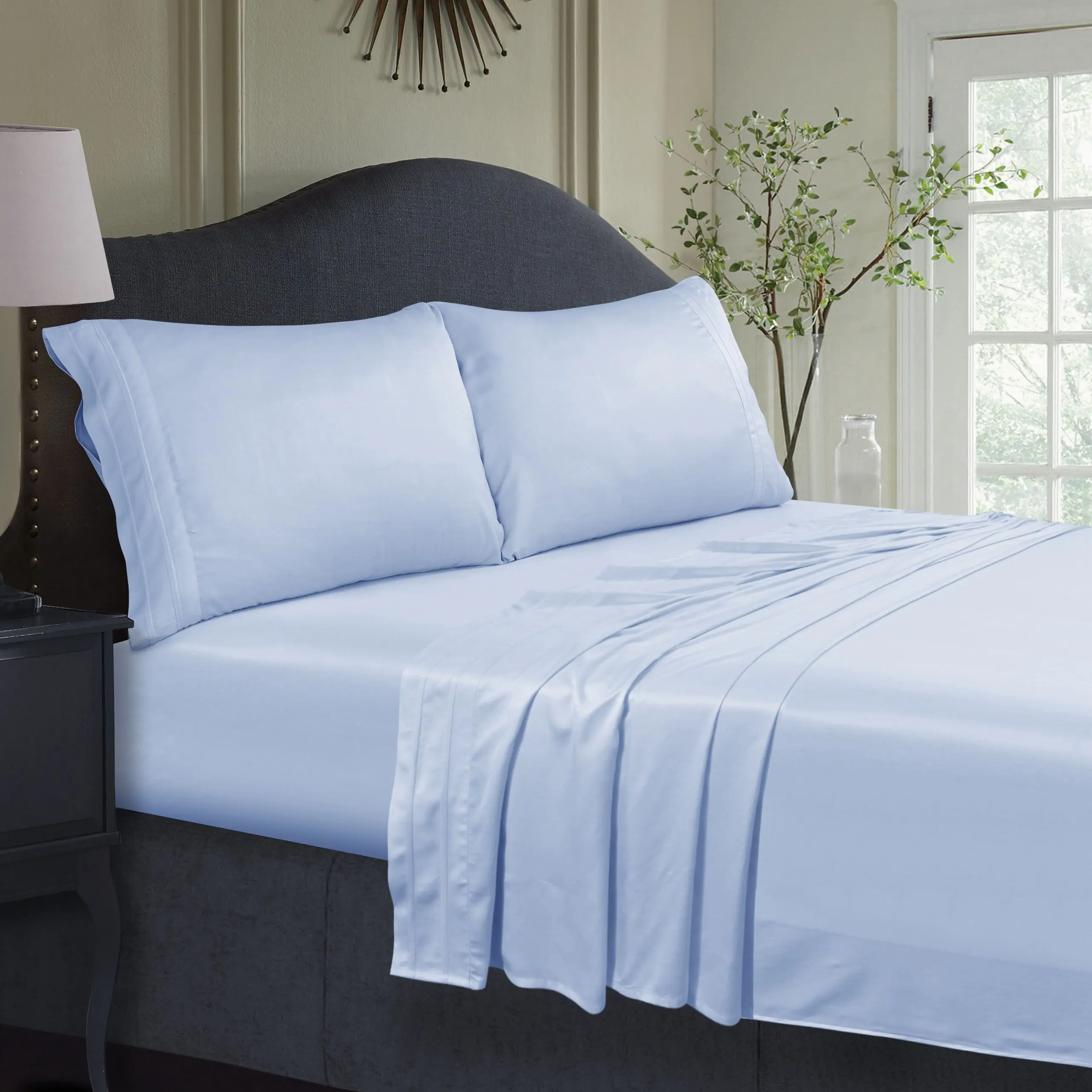 100% Bamboo Woven Modern Solid Color Bedding Set Flat Sheet Fitted Sheet Pillowcases 300tc Thread Count Wedding Four-piece Kit
