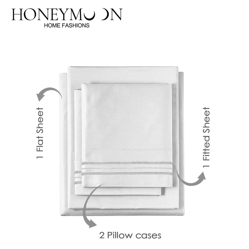 Home Luxury Embroidery Solid Extra Soft Deep Pockets Easy Fit Breathable Cooling Hotel Sheets Wrinkle Free Bed Sheets