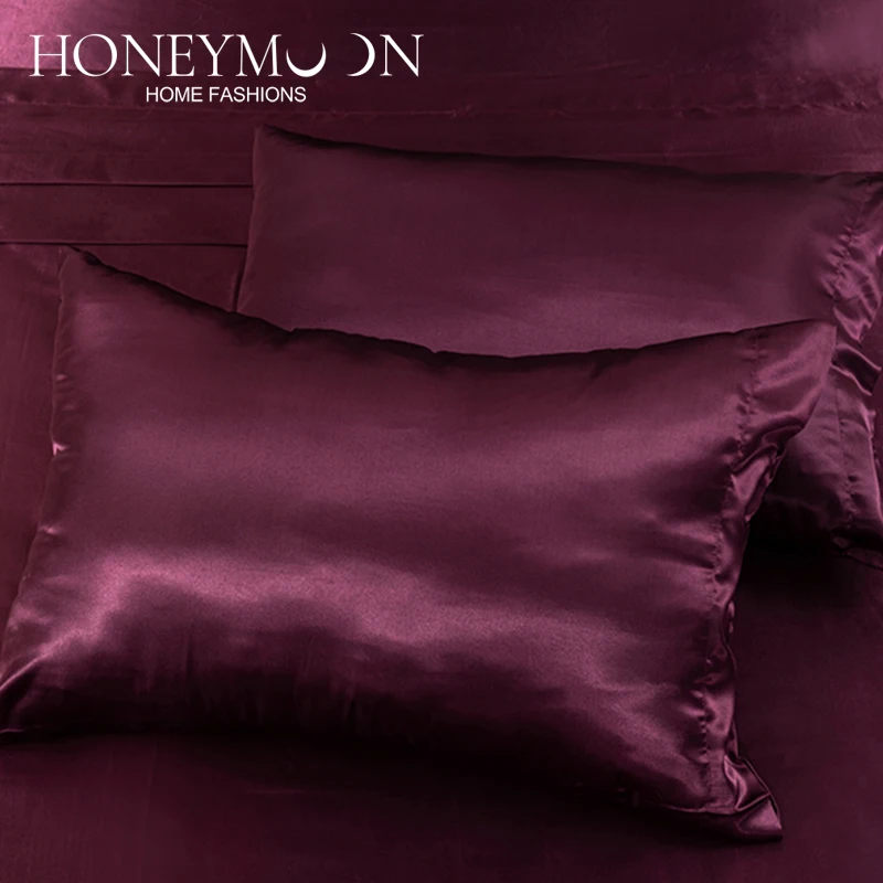 HONEYMOON Hot Sell 90GSM Silky Satin Sheets Silky Smooth Satin Bulk Sheet Set 4 Piece Fitted Flat Sheet Pillowcase
