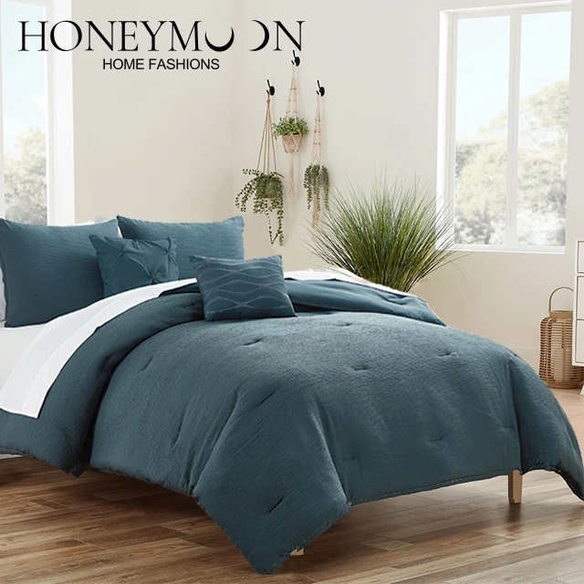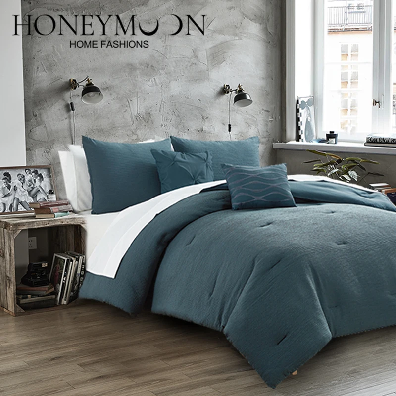 CozyLux Seersucker Queen Size Bedcover 5pcs Comforter Sets Dec Emboreidery and Pinktuck Dec Pillow