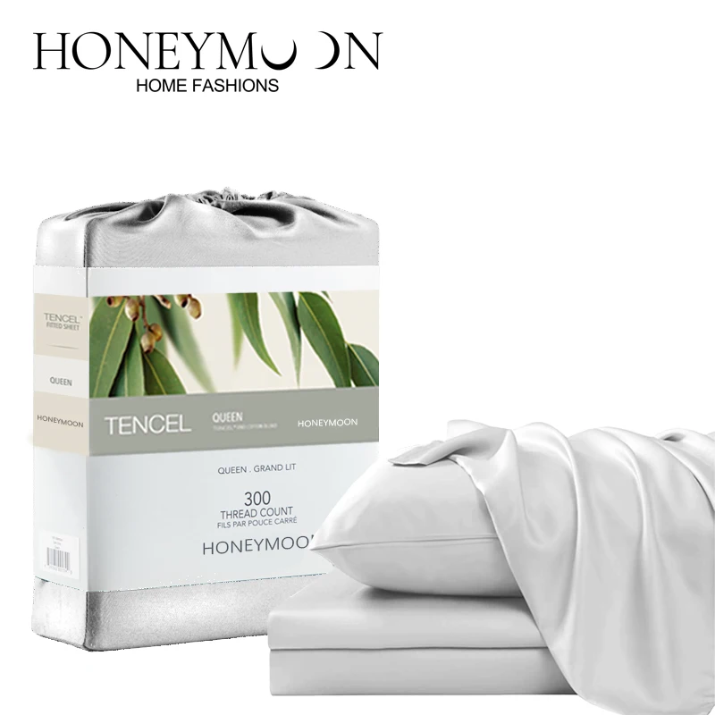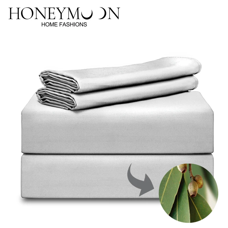 100% Bamboo Woven Modern Solid Color Bedding Set Flat Sheet Fitted Sheet Pillowcases 300tc Thread Count Wedding Four-piece Kit