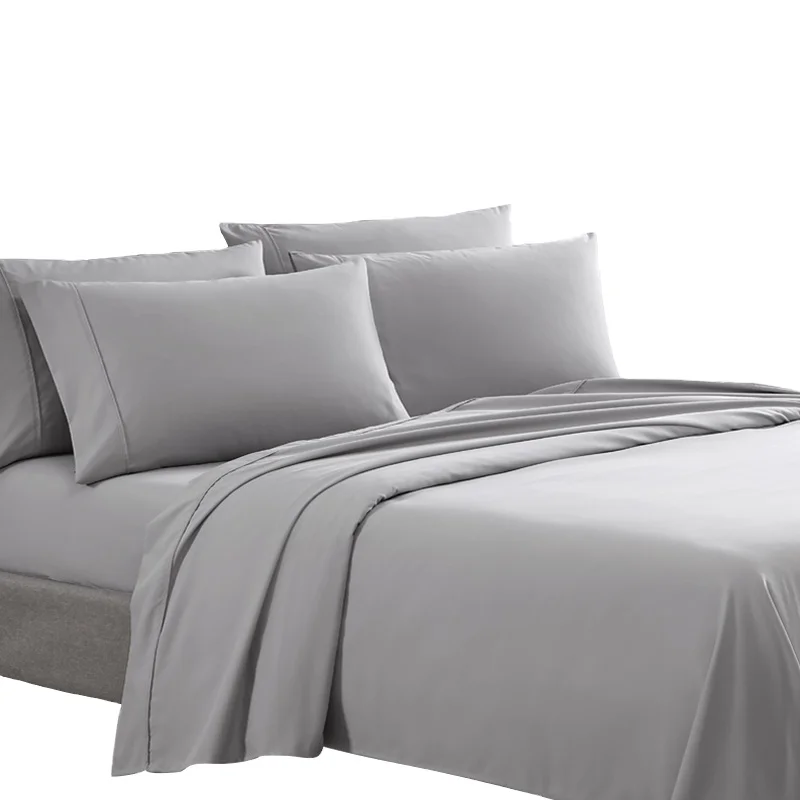 100% Bamboo Fiber Woven Modern Solid Color Bedding Set Super King Size Includes Flat Bed Sheet Fitted Duvet Cover