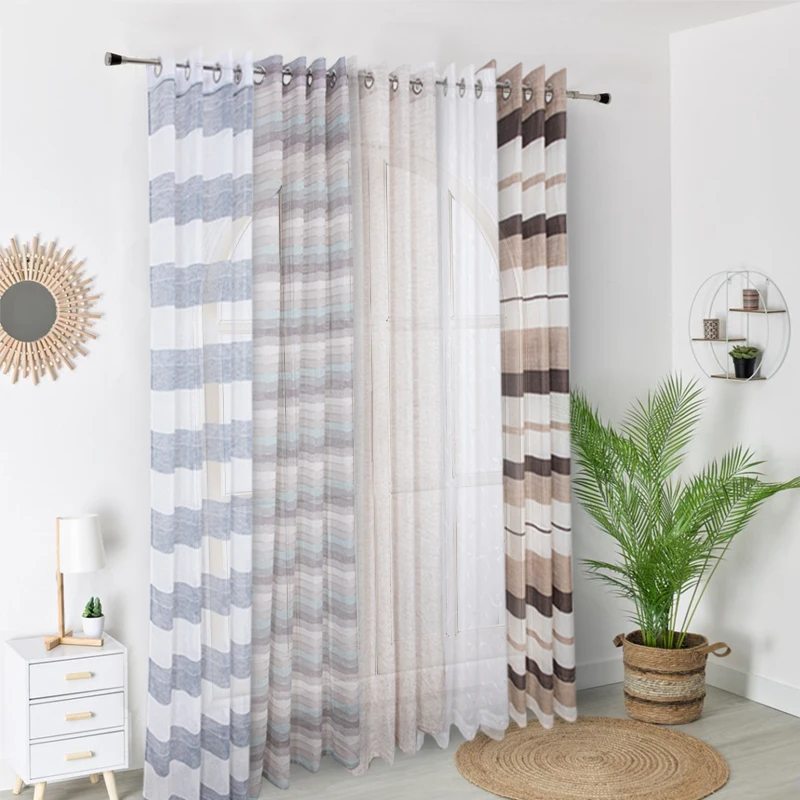 Honeymoon Cheap Simple Solid Stripe Cloth Office Voile Bedroom Grommet Window Sheer Curtain