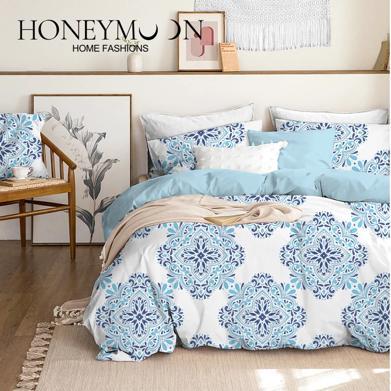 HONEYMOON Hot Sell 3D Fashion Printed Bedding 3pcs Modern Soft Cotton Bed Set Comforter Sets for Home
