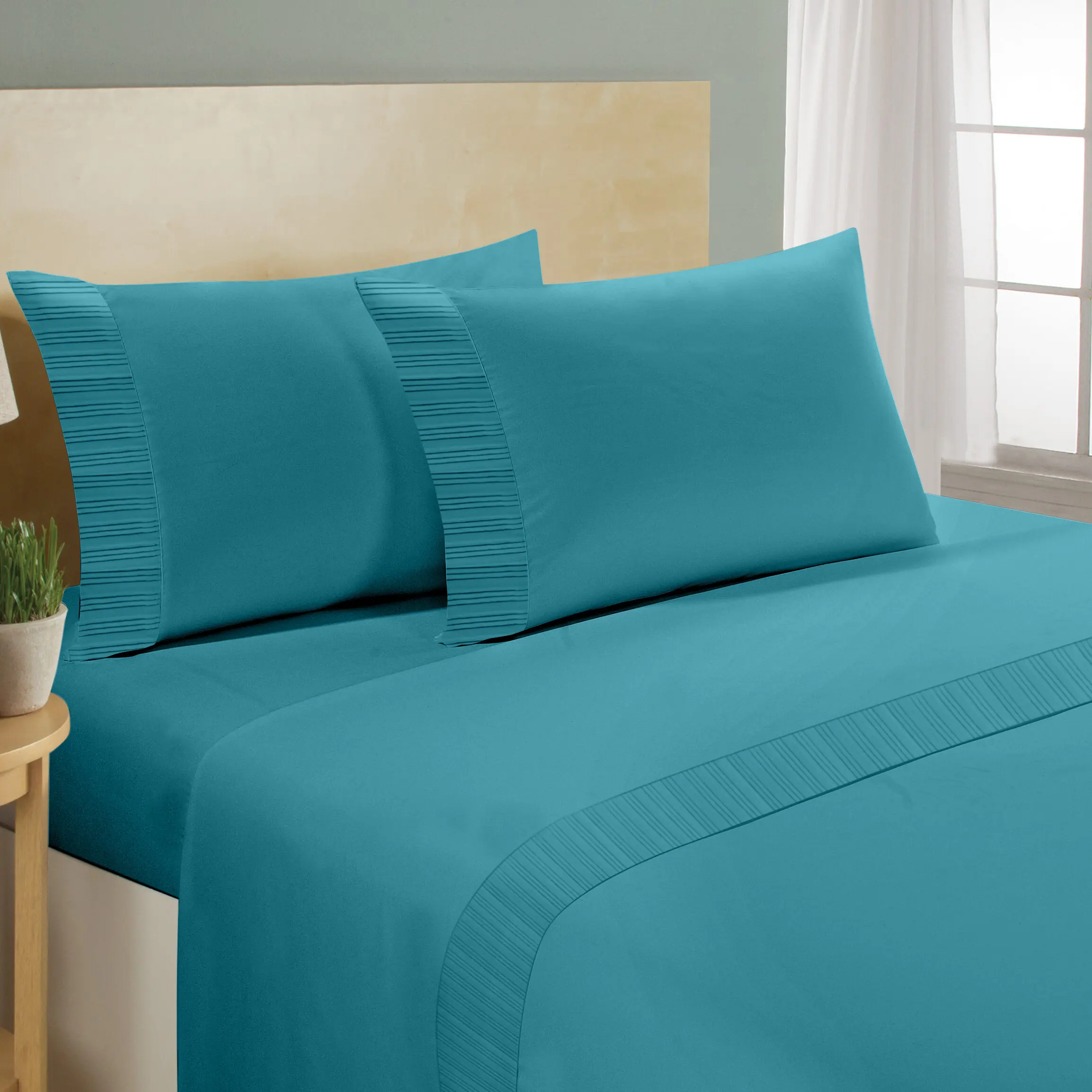 100% Bamboo Fiber Woven Modern Solid Color Bedding Set Super King Size Includes Flat Bed Sheet Fitted Duvet Cover