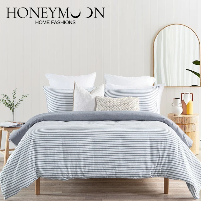 Hot Sale High Quality Soft Hand 90gsm Cationic Stripe Duvet Cover Sets 3pcs