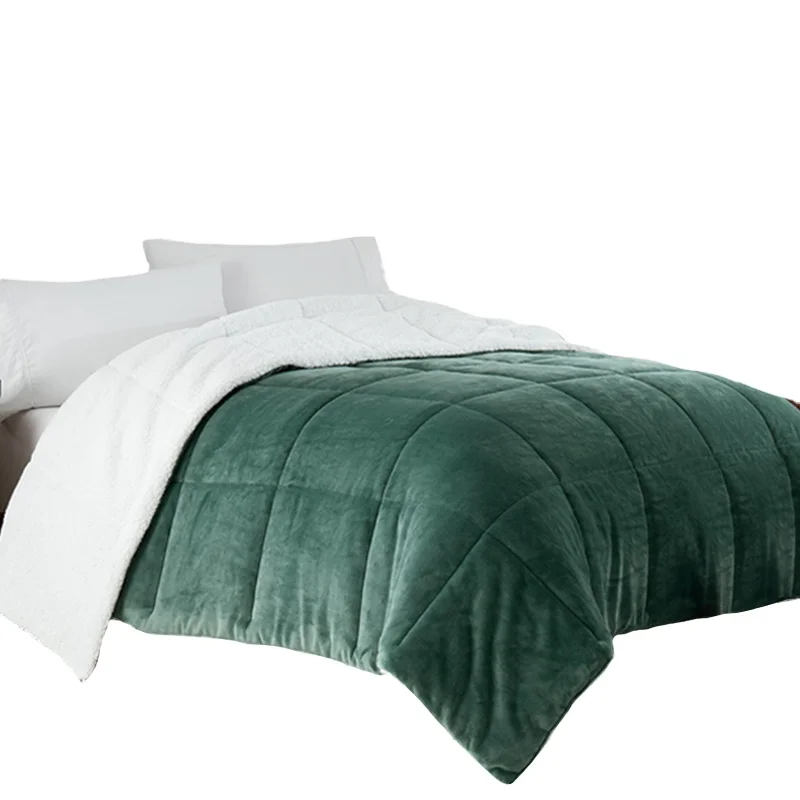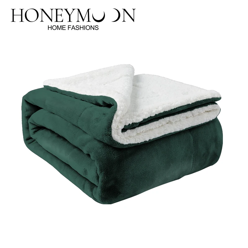New Custom Design Luxury Soft Machine Washable Wool Like Reversible Sherpa Quilt