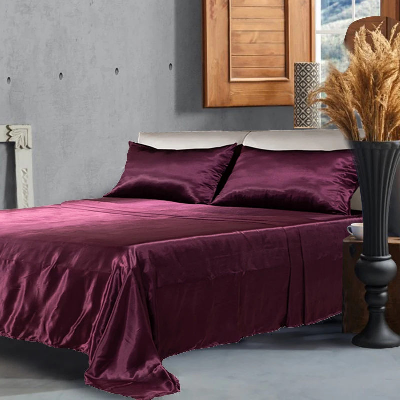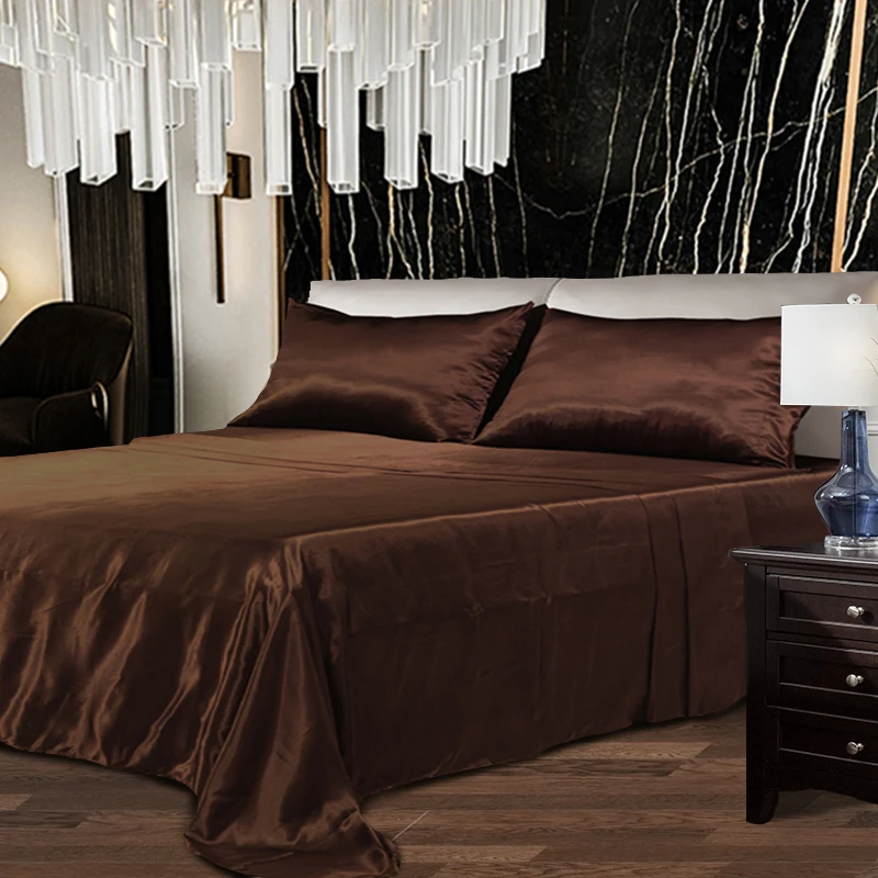 Wholesale Home Textile Solid Satin Flat Bedsheet Bedding Set for Bedroom Home