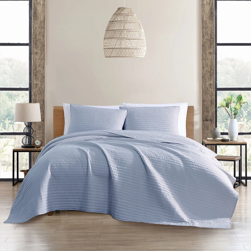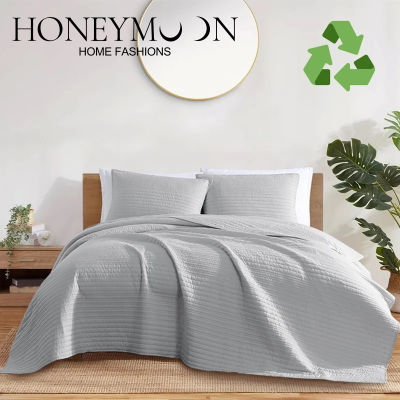 Honeymoon Wholesale Recycle 100% Cotton Microfiber Quilt Stripe Bedspread Coverlets Set