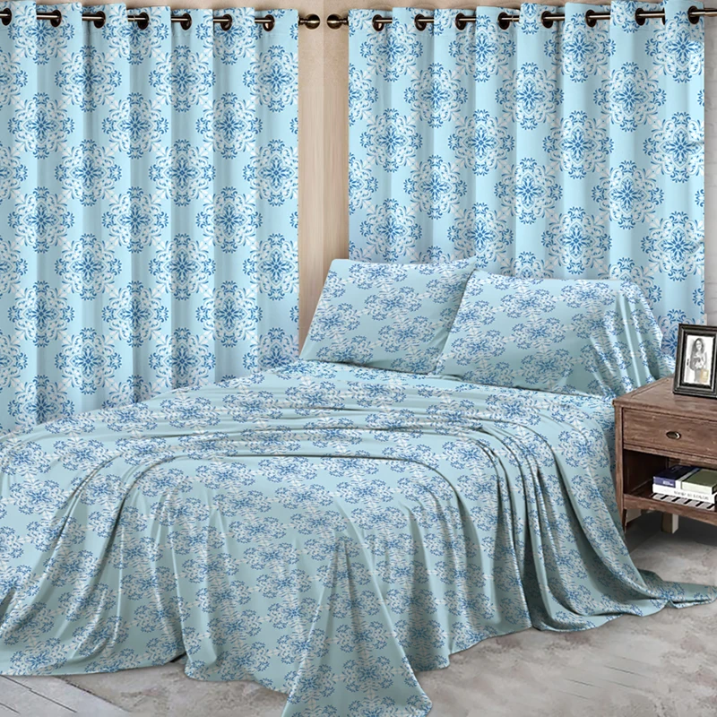 Hot Selling 100% Polyester Fabric Bedsheet Set With Curtains 2bedsheet+4curtains+4pillowcase