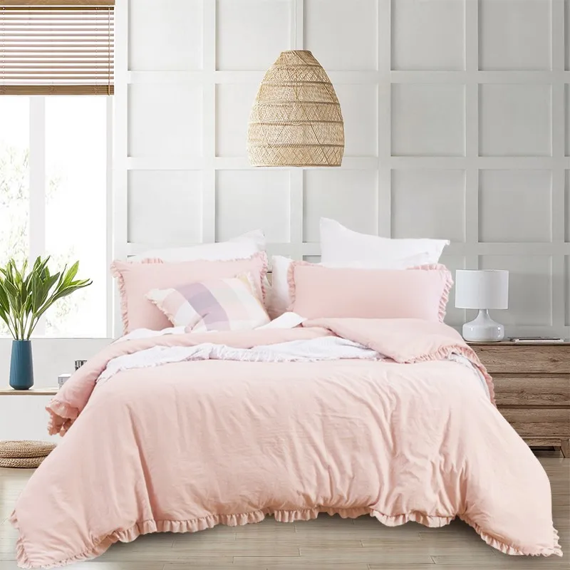 2023 New Bedding Set Luxury 95gsm Prewashed Microfibre 100% Polyester Ruffle Duvet Cover Sets Bedding for Home