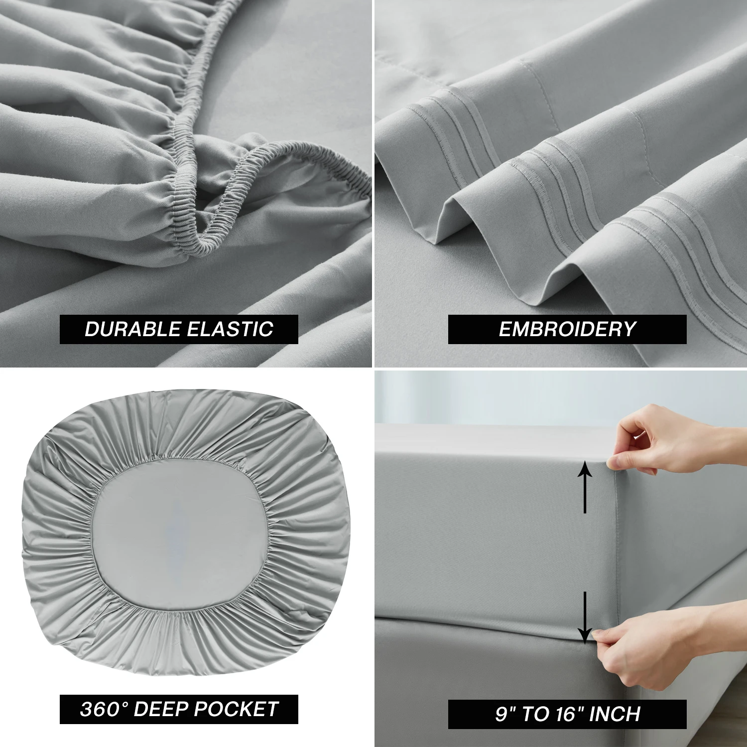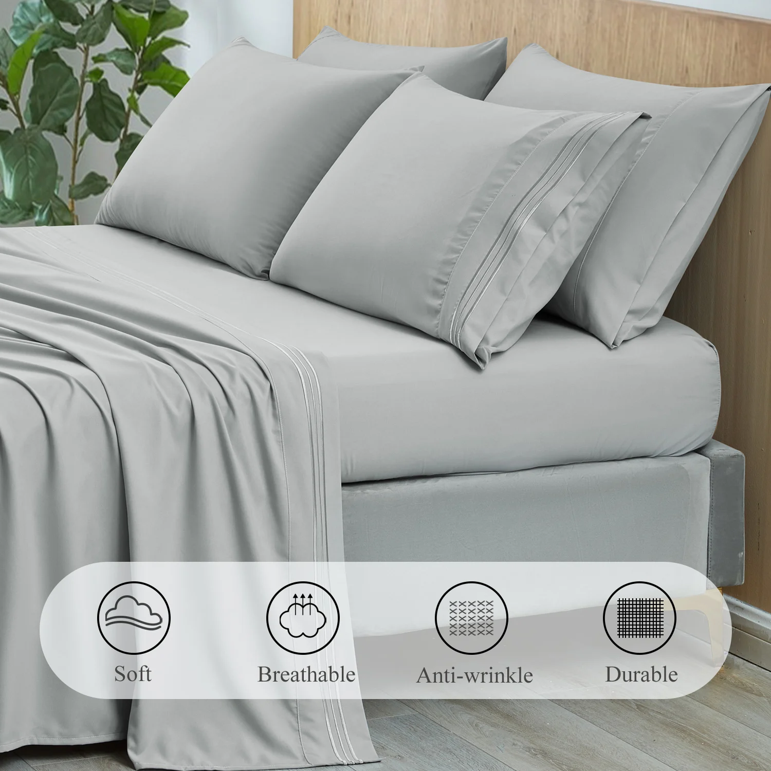 Wholesale King Size 4-Piece Bedding Set Pure Bed Sheets with Blend Fitted Sheet Cover