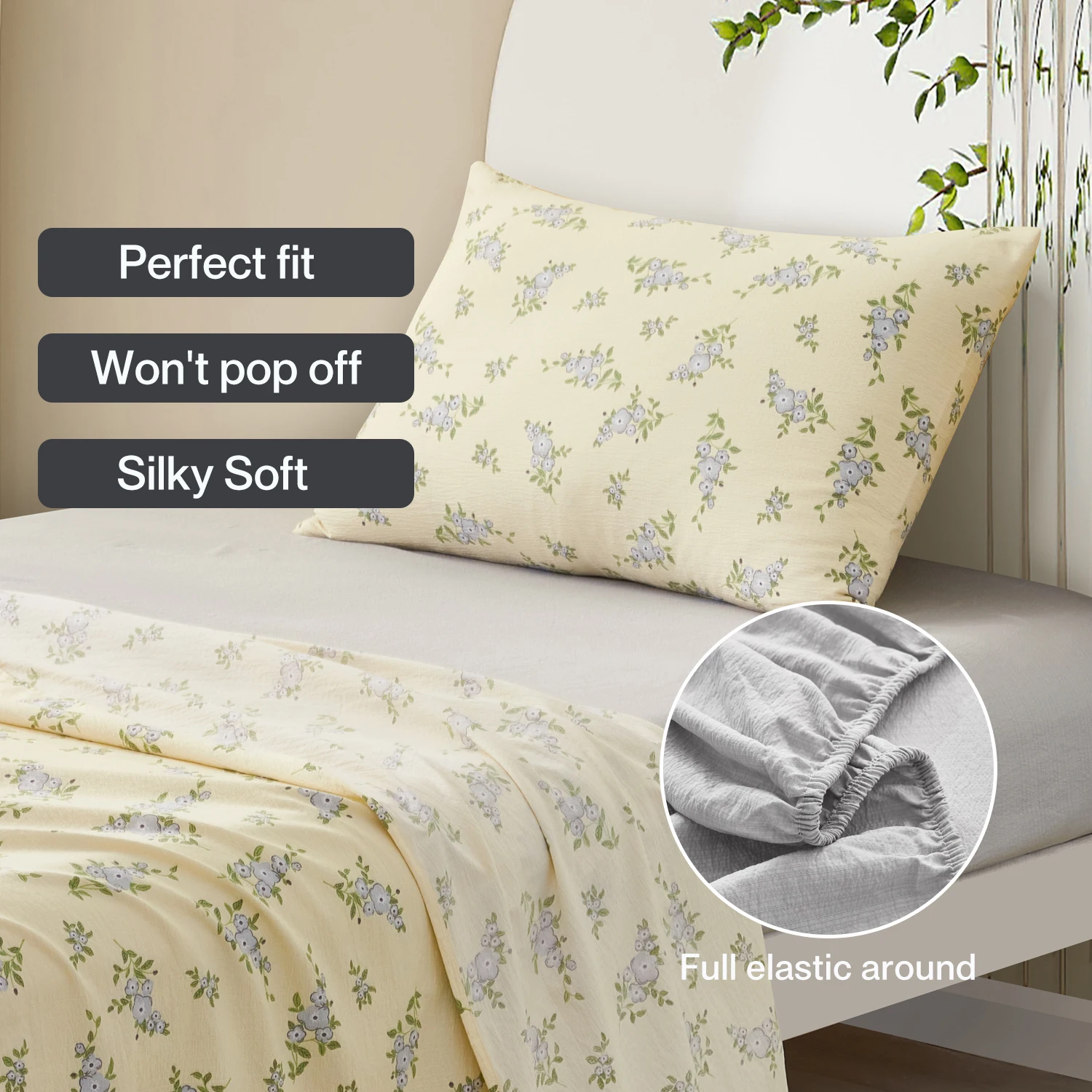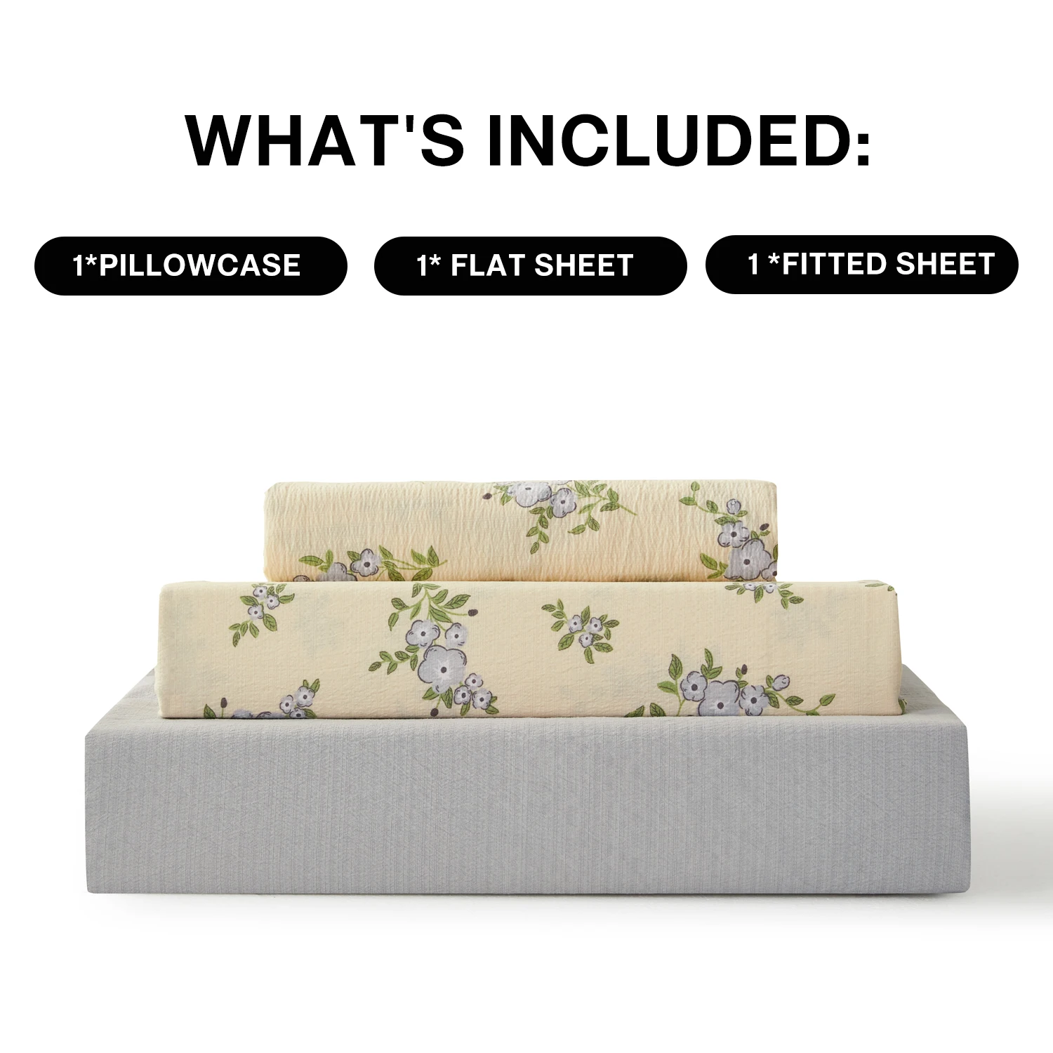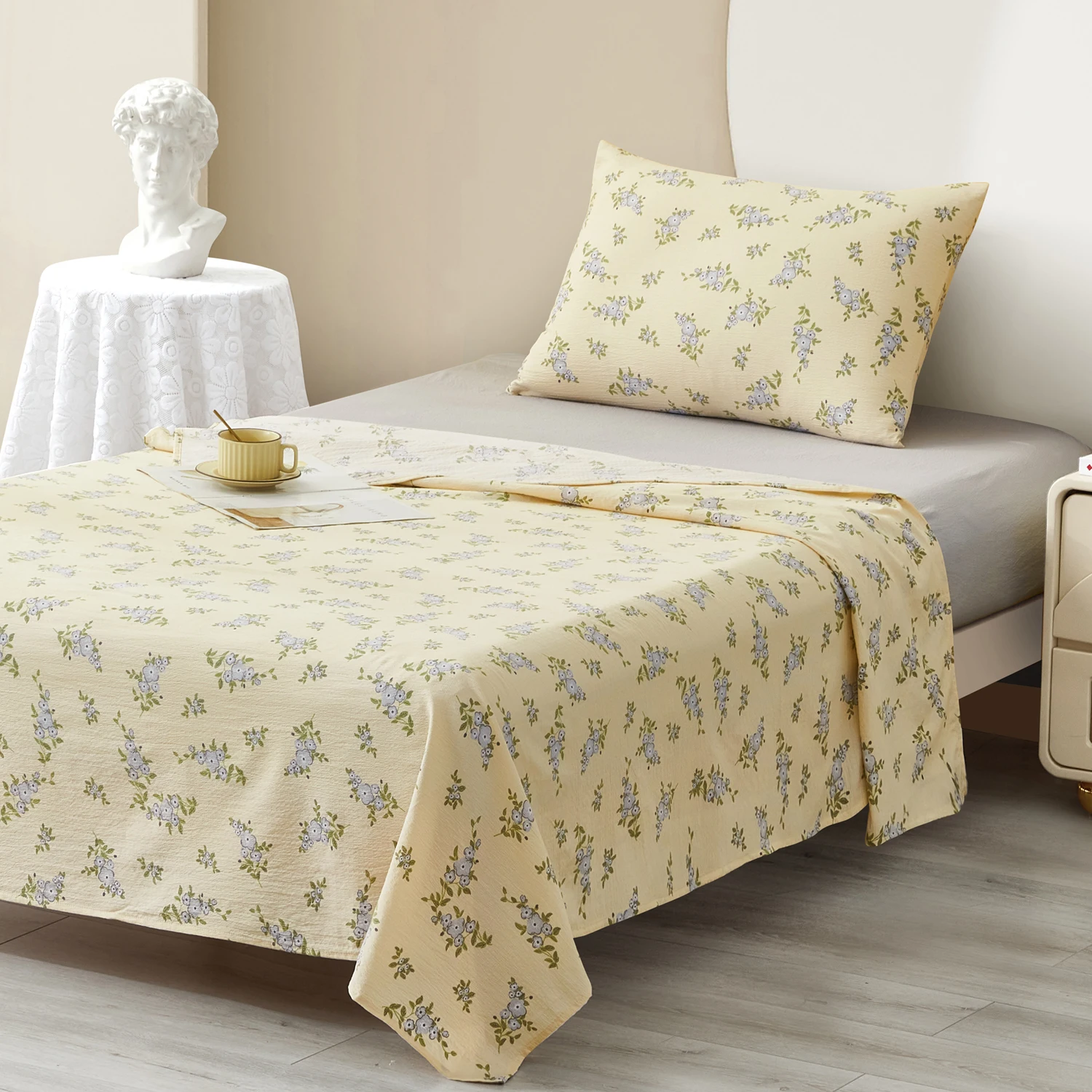Luxury Double Bedroom Bed Sheets Set 3pcs Printed Plant Pattern Woven King and Queen Sizes Low MOQ for Home Use