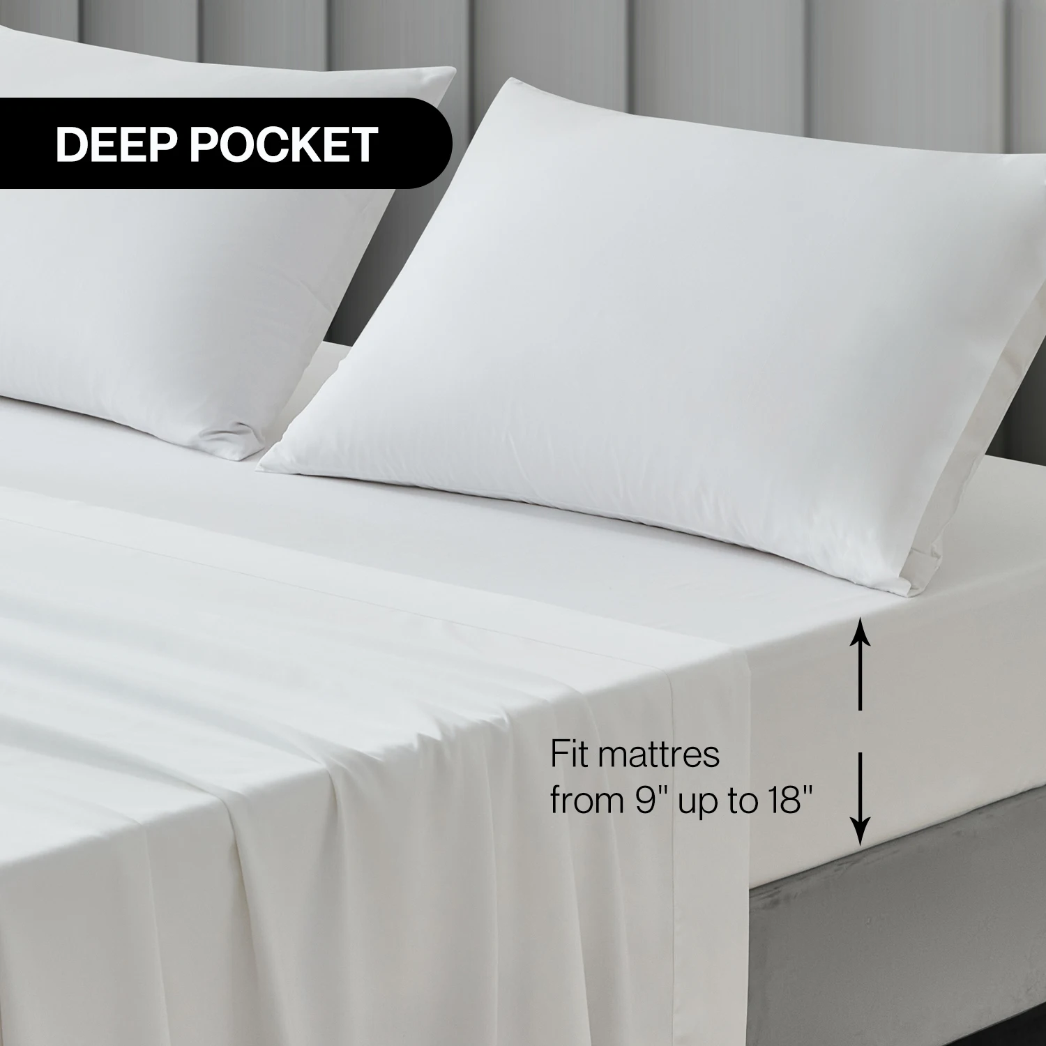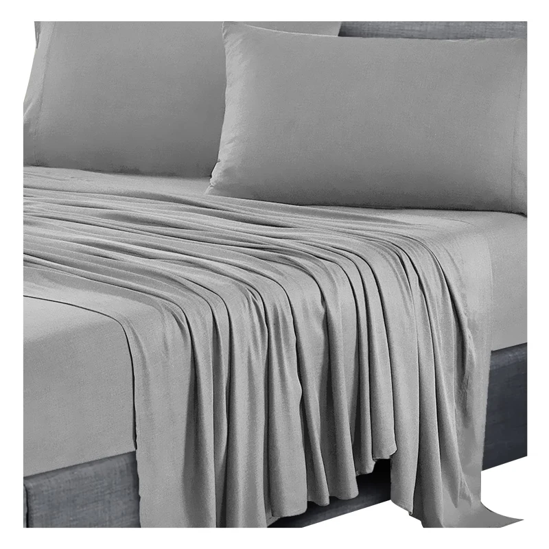 100% Bamboo Fiber Woven Modern Solid Color Bedding Set Super King Size Includes Flat Bed Sheet Fitted Duvet Cover