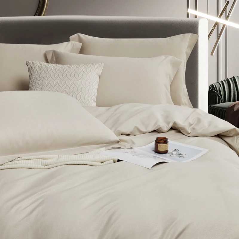 100% Bamboo Fiber Woven Modern Solid Color Bedding Set Super King Size Includes Flat Bed Sheet Fitted Duvet Cover