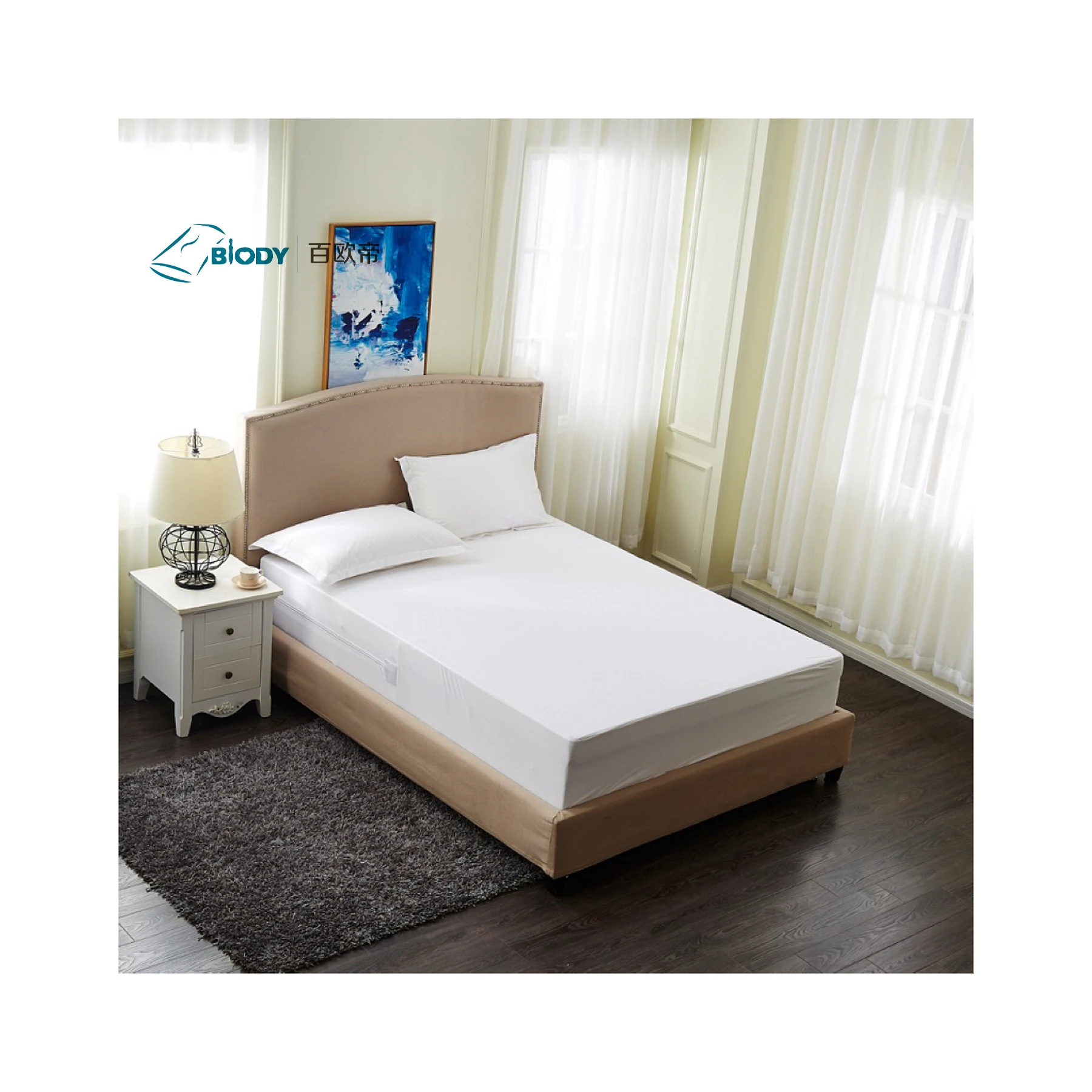 Hotel Waterproof 100% Cotton Knitted Mattress Protector Cover With Zipper Closure
