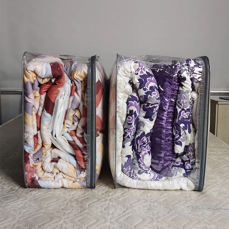 Clear PVC Heavy Zipper Bag Quilt Pillow Blanket Bedding Packaging Bags With Handle Transparent Plastic Bag for Quilt