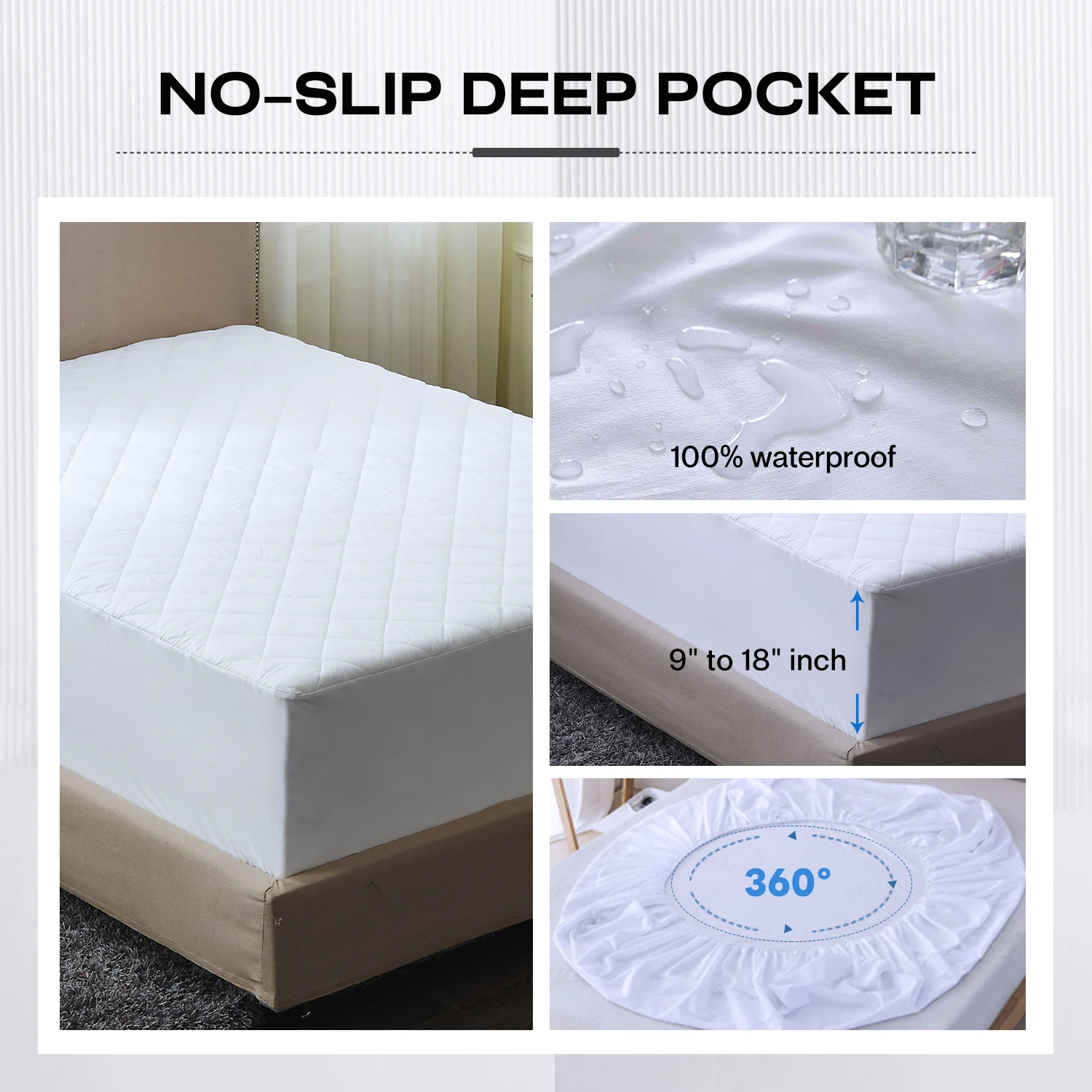 Extra Deep Pocket Queen Waterproof Mattress Protector Solid Quilted Bed Topper Mattress Covers for Double Bed King Size