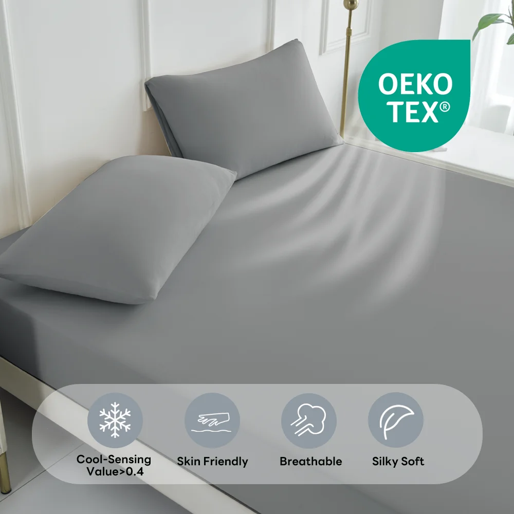 100% Bamboo Fiber Woven Modern Solid Color Bedding Set Super King Size Includes Flat Bed Sheet Fitted Duvet Cover