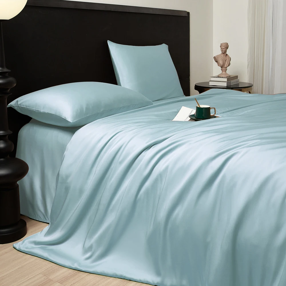 100% Bamboo Fiber Woven Modern Solid Color Bedding Set Super King Size Includes Flat Bed Sheet Fitted Duvet Cover