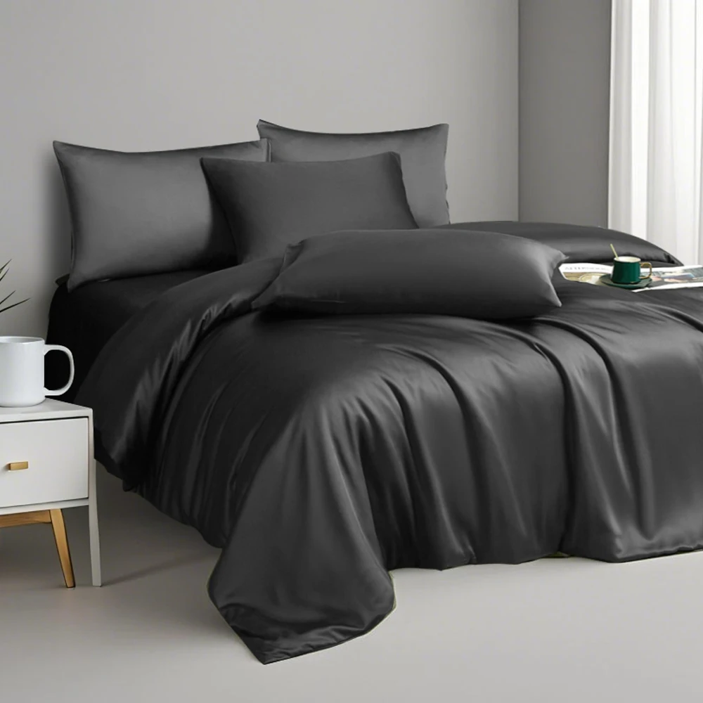 100% Bamboo Fiber Woven Modern Solid Color Bedding Set Super King Size Includes Flat Bed Sheet Fitted Duvet Cover
